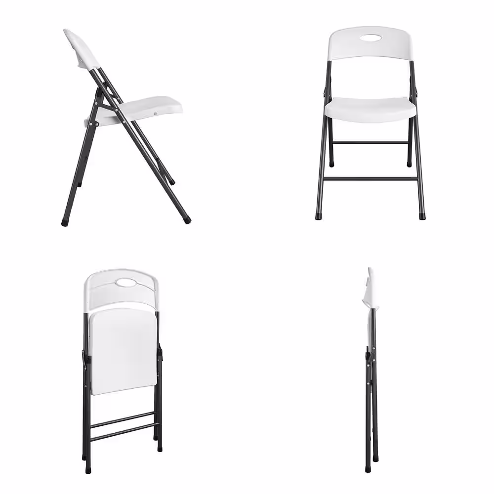 Cosco Solid Resin Plastic Folding Chair, Indoor/Outdoor, Double Braced, White, 4-Pack