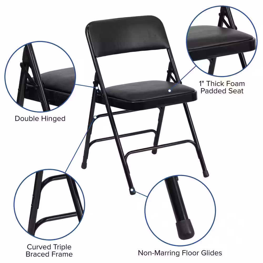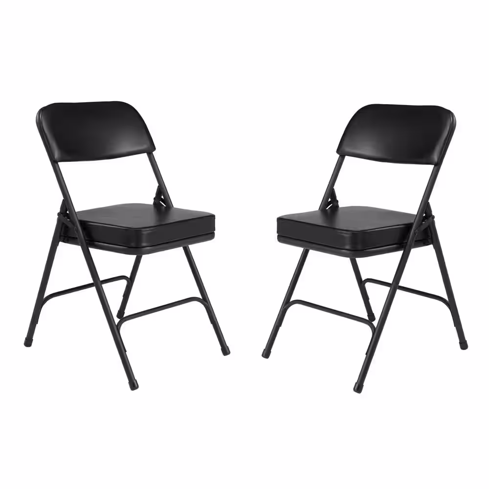 National Public Seating 3200 Series Premium 2 in. Vinyl Upholstered Double Hinge Folding Chair, Black (Pack of 2)