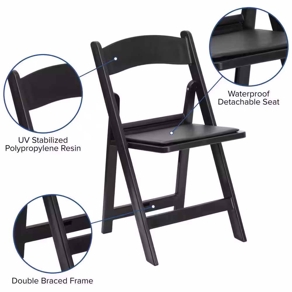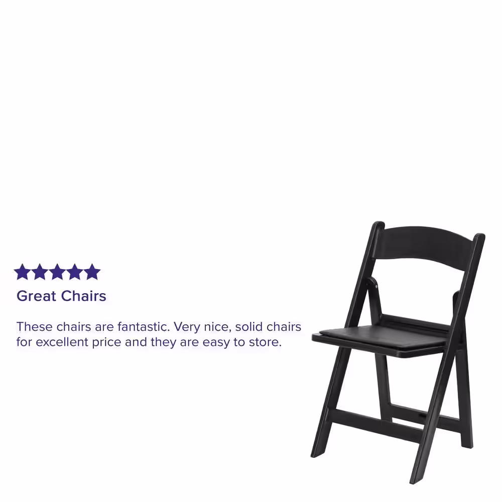 Flash Furniture Hercules Series 1000 lb. Capacity Black Resin Folding Chair with Black Vinyl Padded Seat