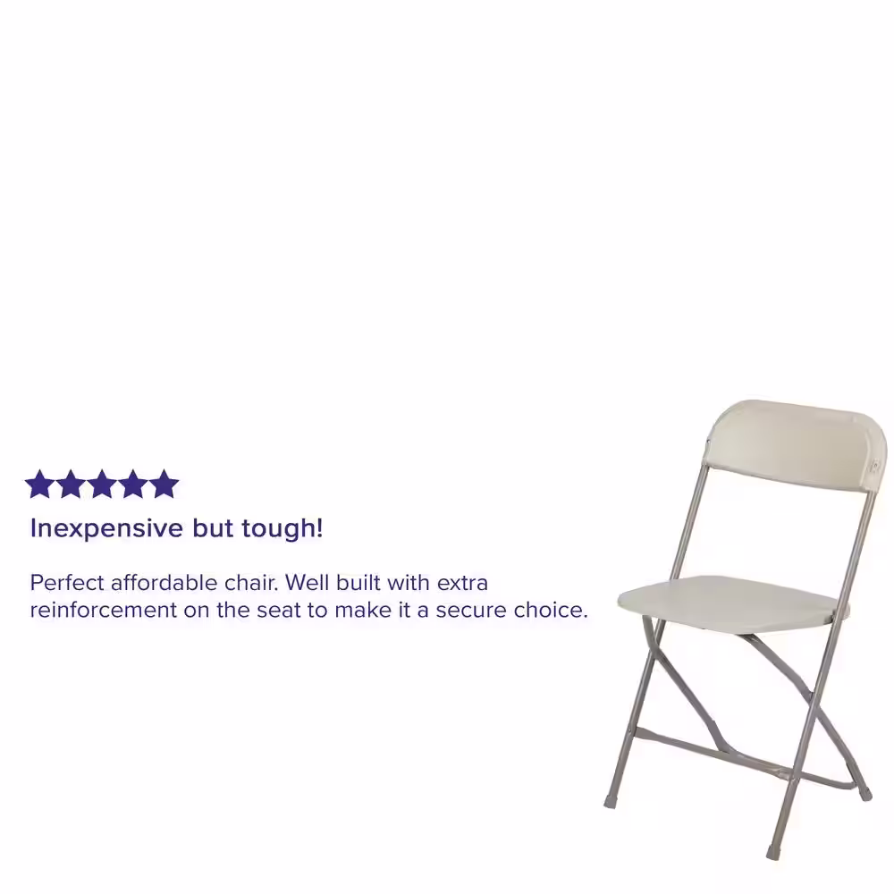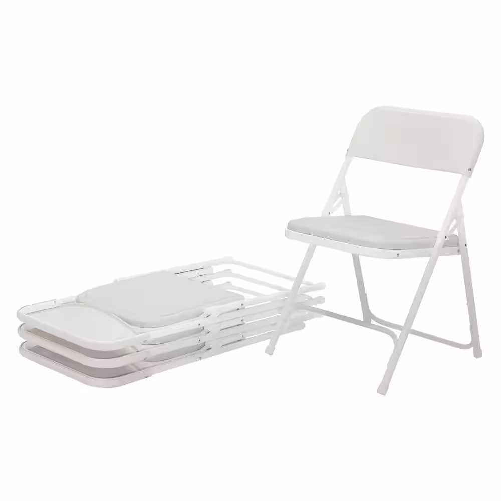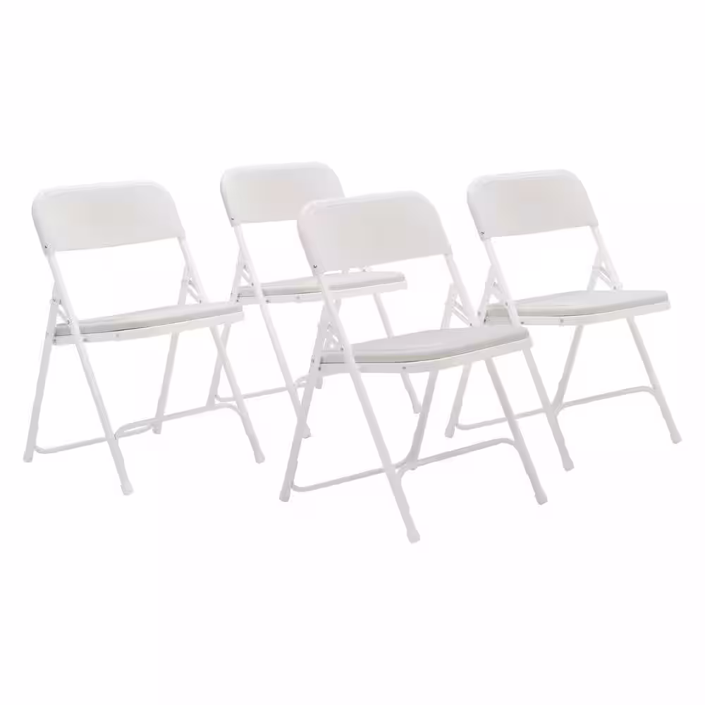 National Public Seating White Plastic Seat Metal Frame Outdoor Safe Folding Chair (Set of 4)