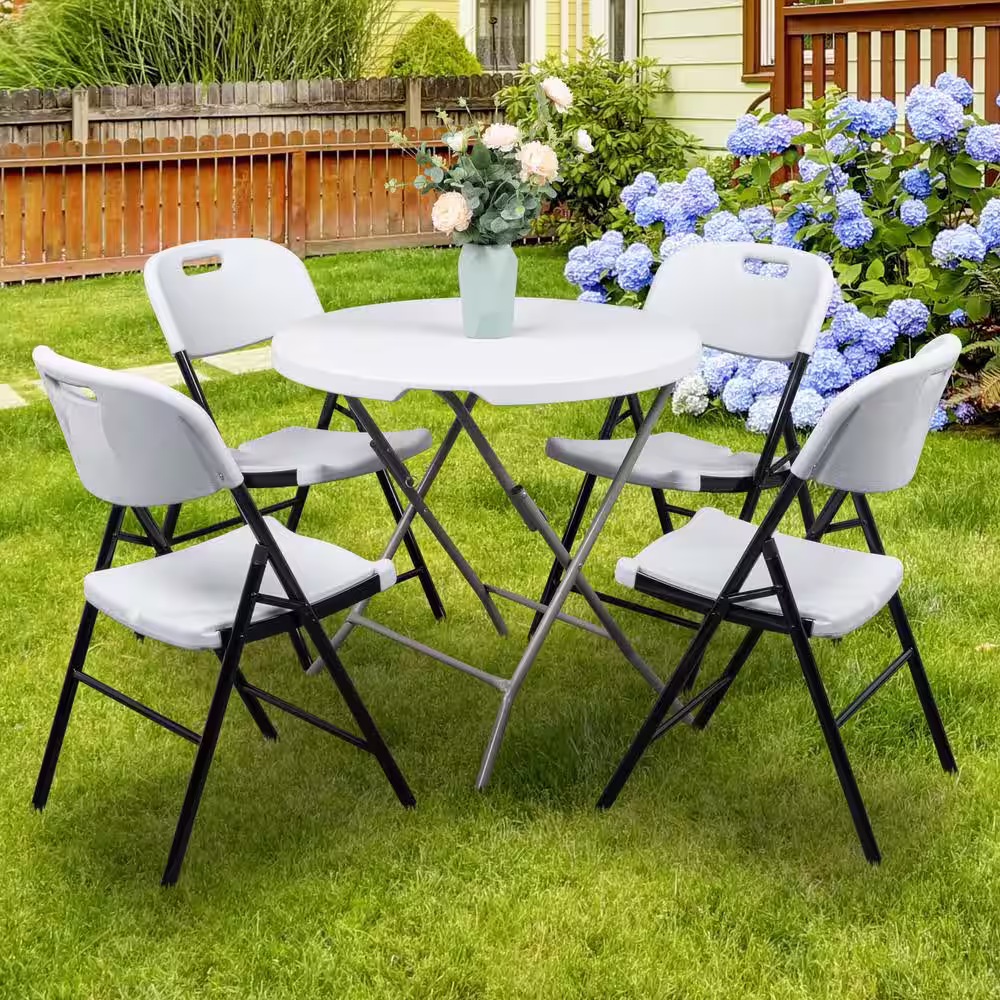 Cosco White Plastic Seat Metal Frame Outdoor Safe Folding Chair (Set of 8)