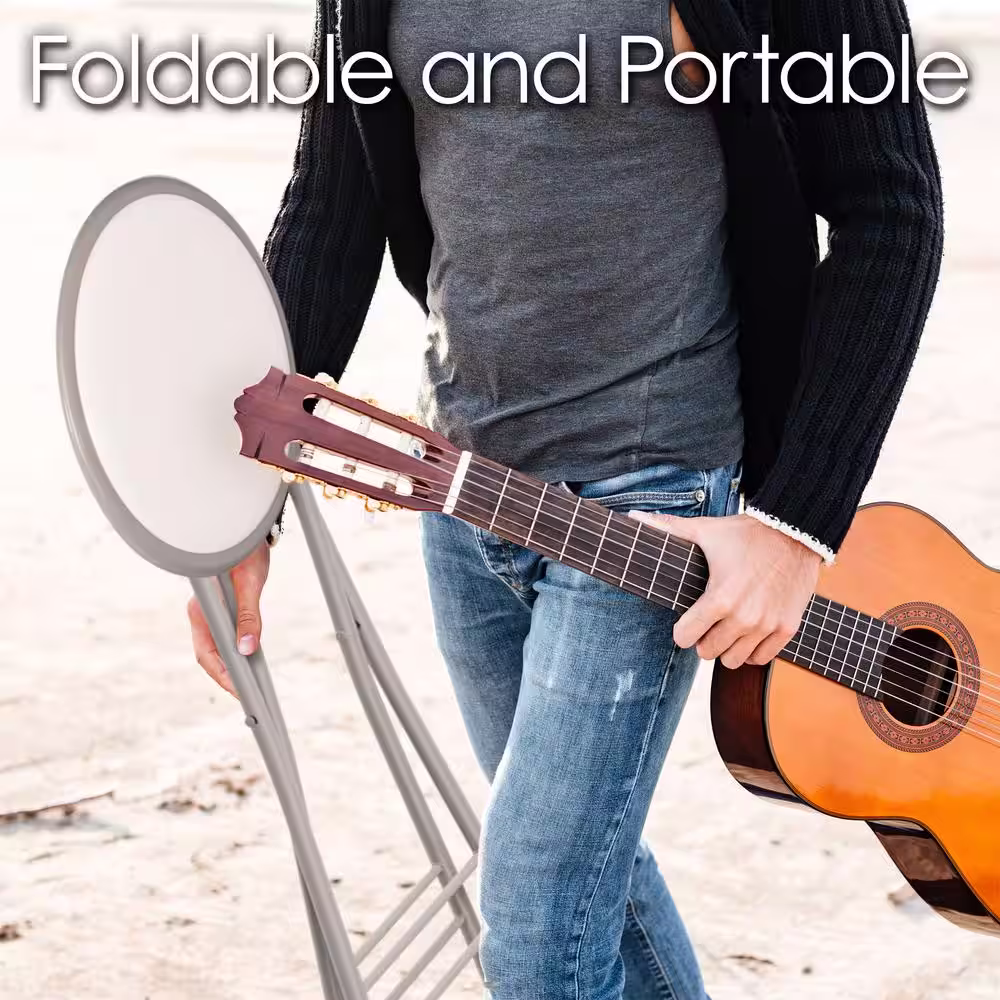 None 24 in. Black Round Metal Folding Stool with 300 lbs. Capacity - Folding Chair