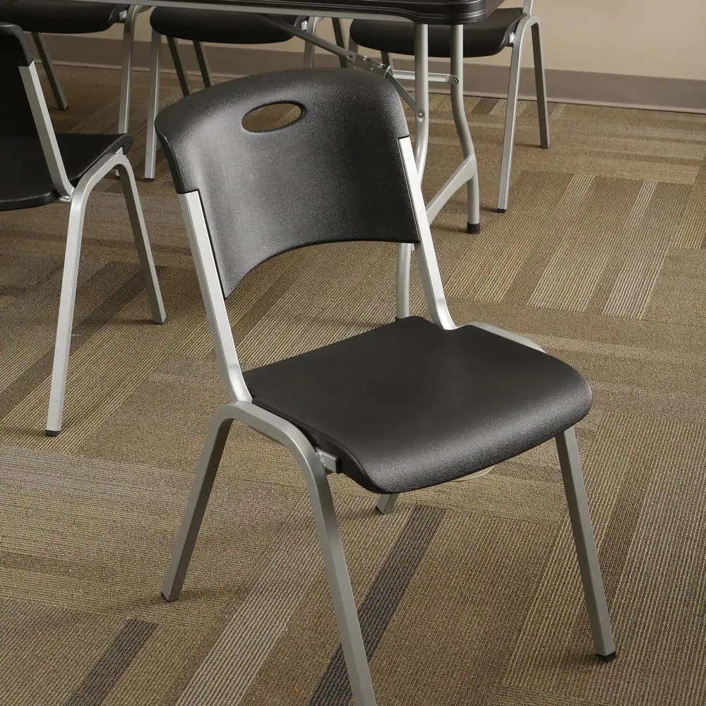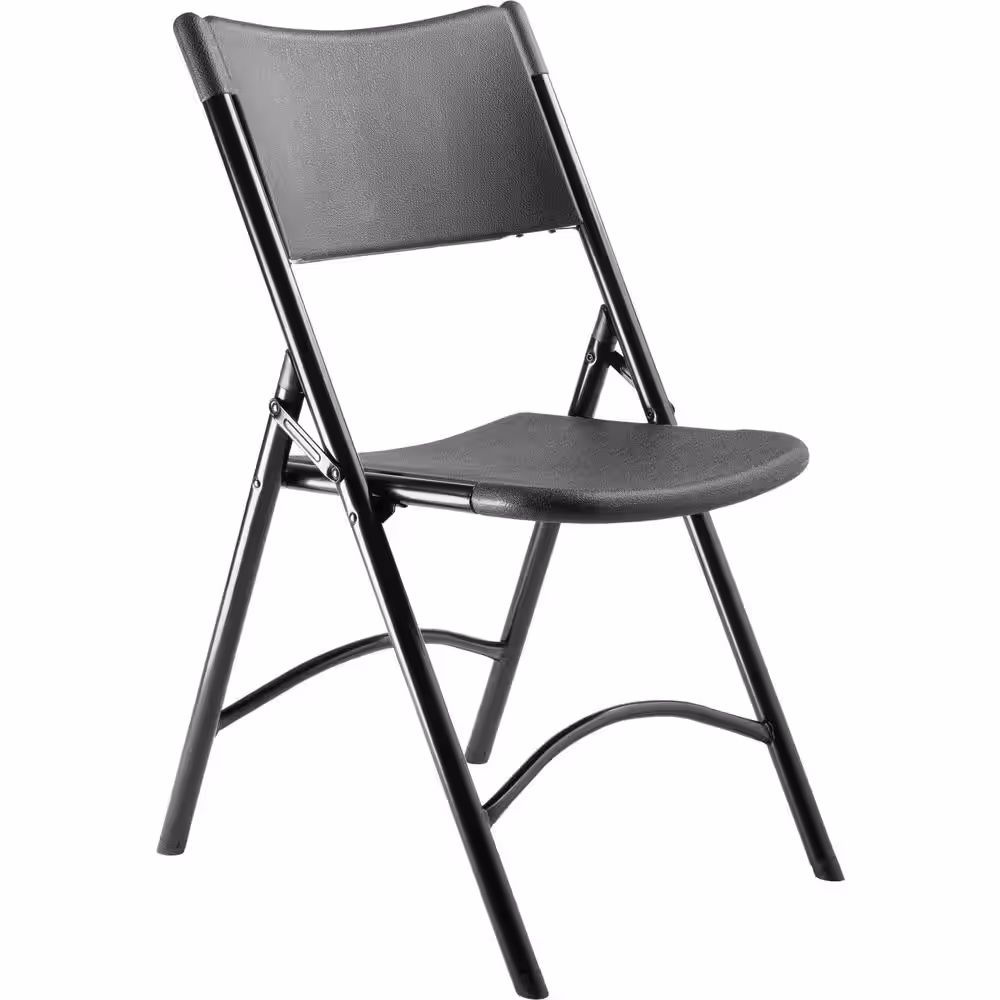 National Public Seating 600 Heavy-Duty Black Plastic Metal Frame Folding Chair (4-Pack)