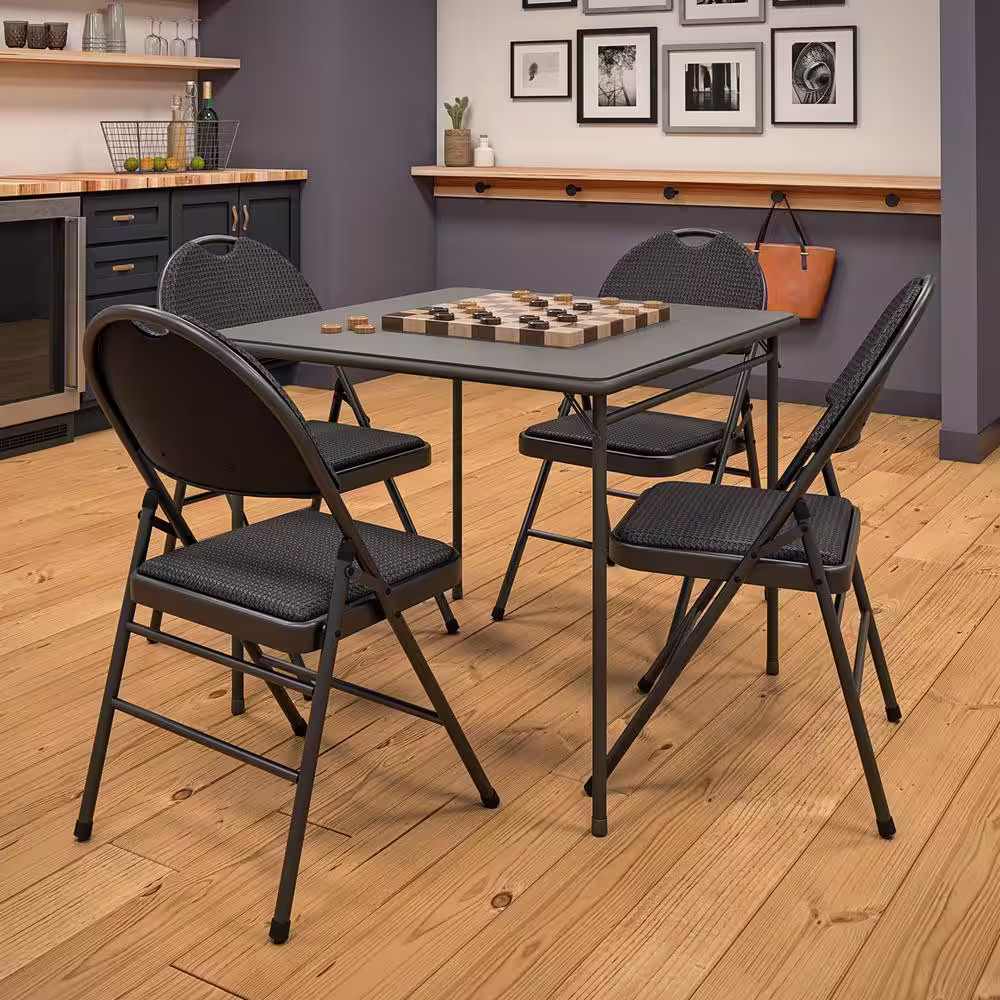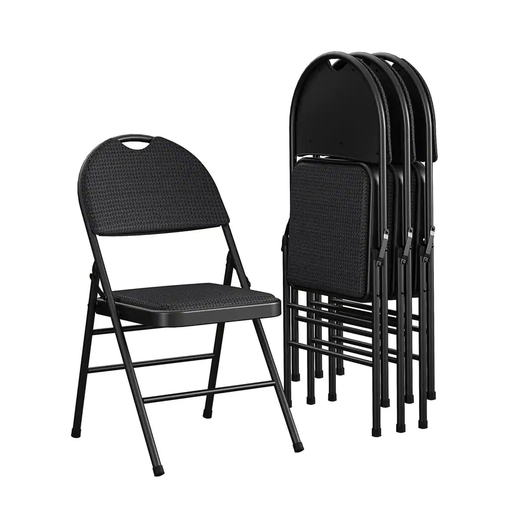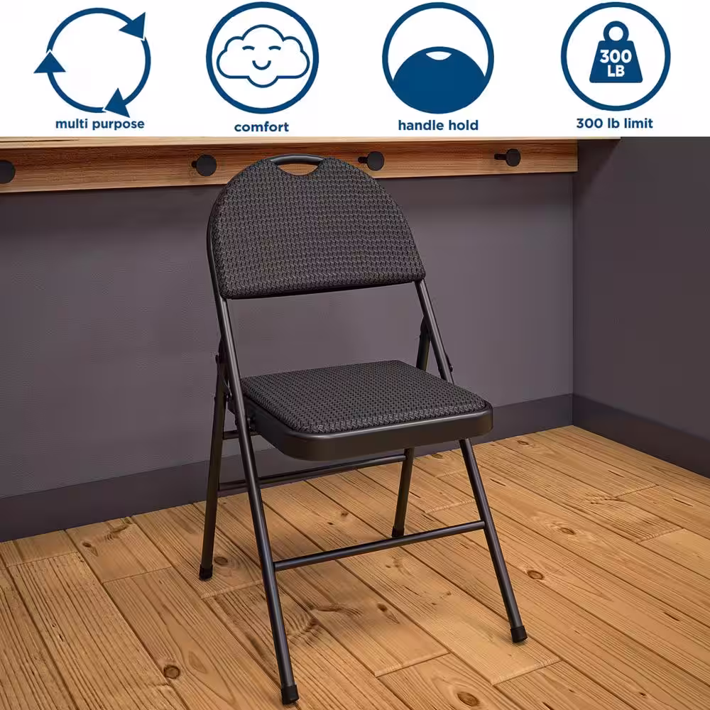 Cosco Commercial XL Comfort Fabric Padded Metal Folding Chair, Triple Braced, Black, 4-Pack