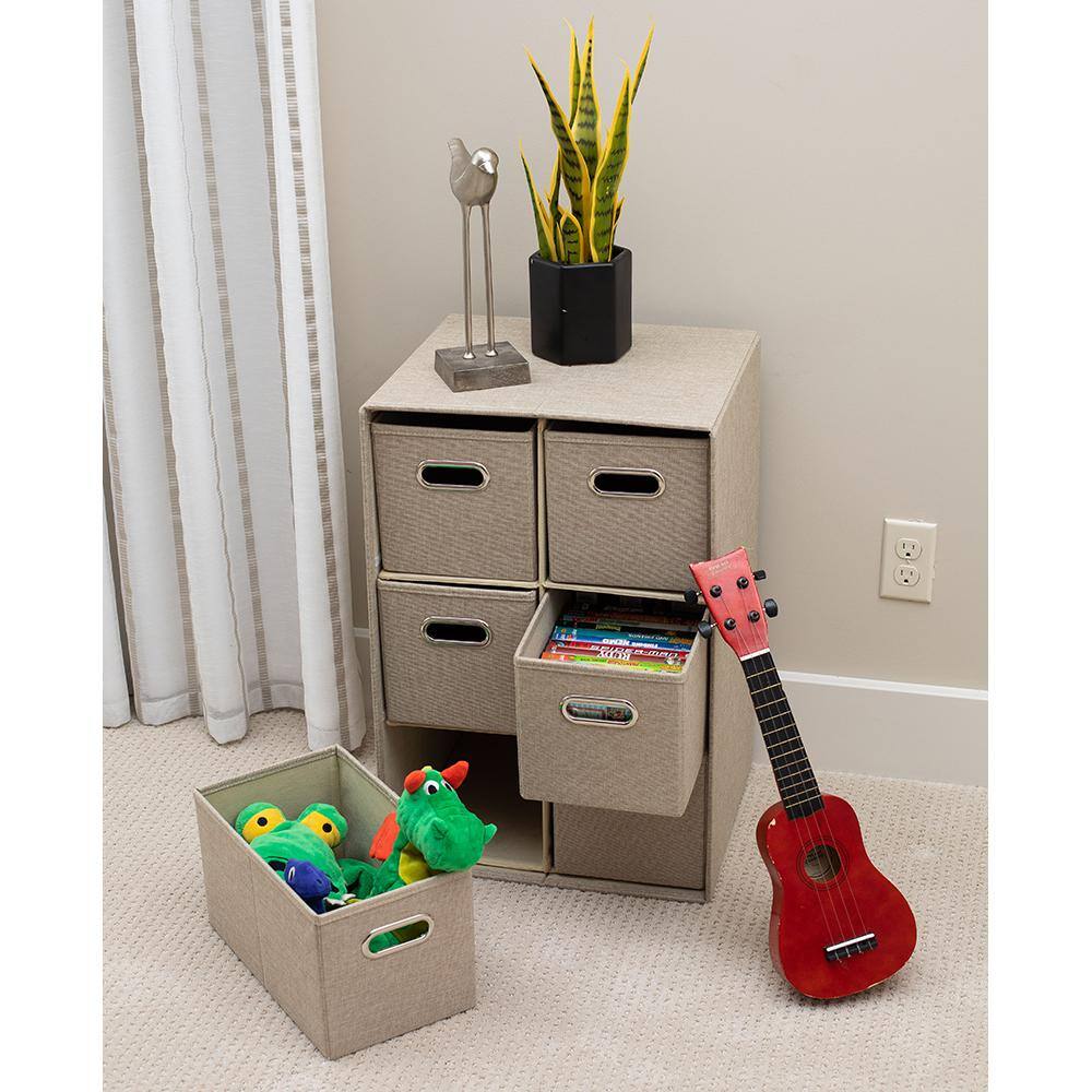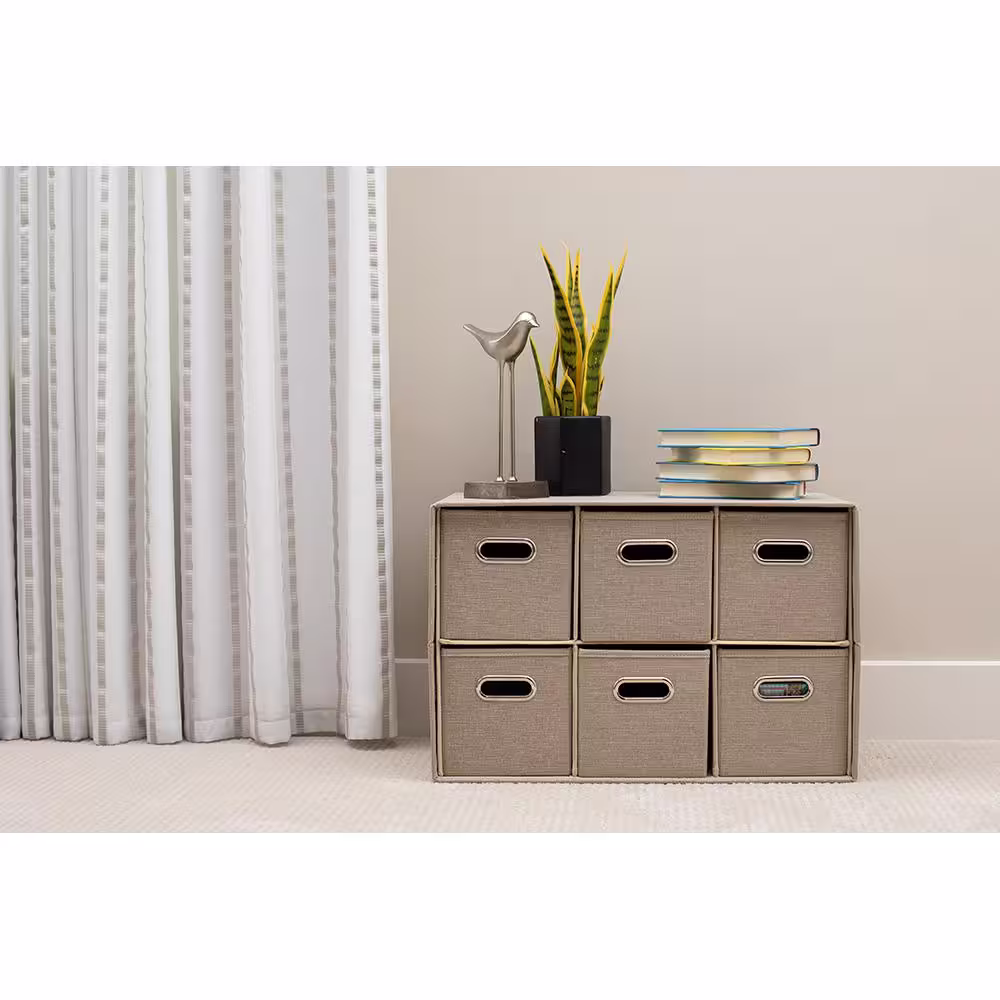 BirdRock Home 25 in. H x 14.5 in. W x 16.75 in. D Cream Fabric Linen 6 Cube Organizer Shelf with Storage Bins