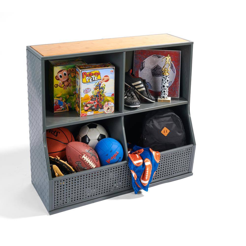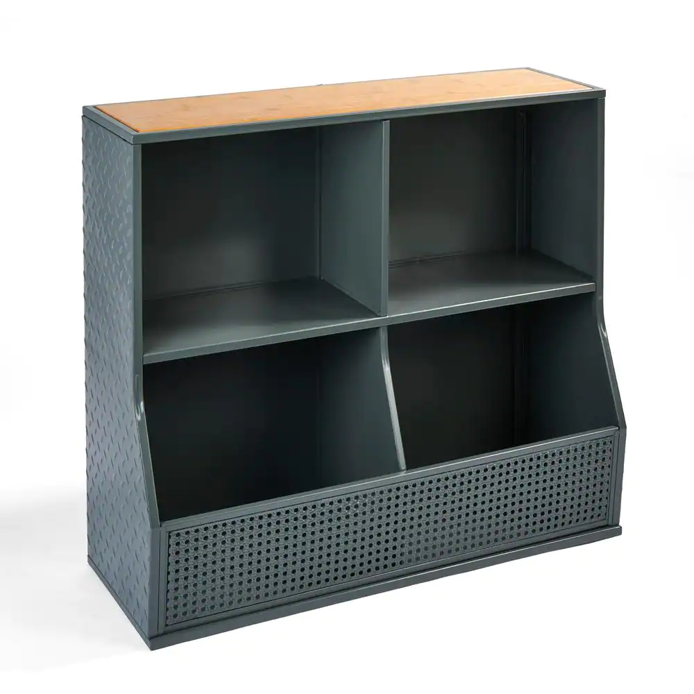 Badger Basket 33 in. H x 36.25 in. W x 14.25 in. D Gray Metal and Bamboo 4 Cube Organizer