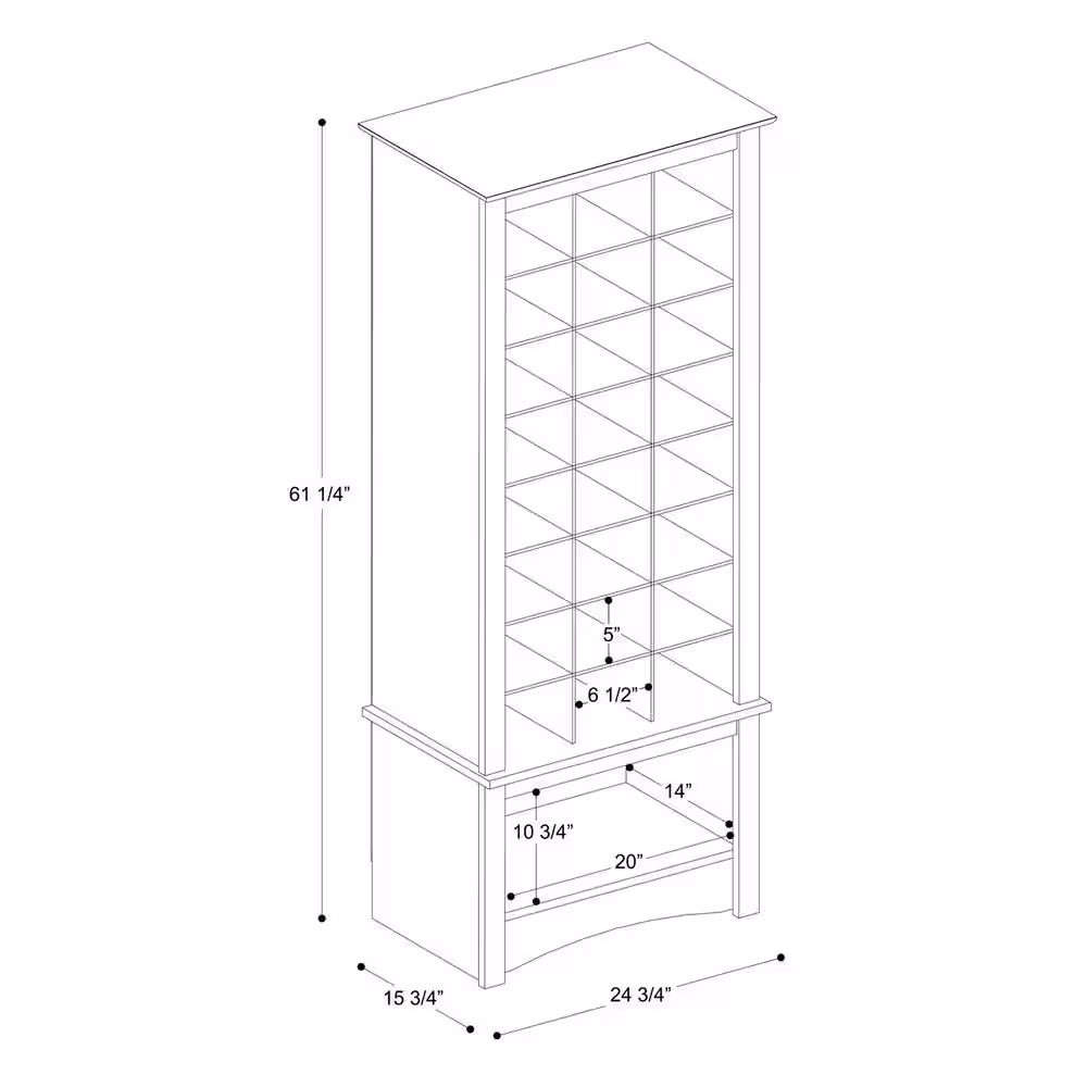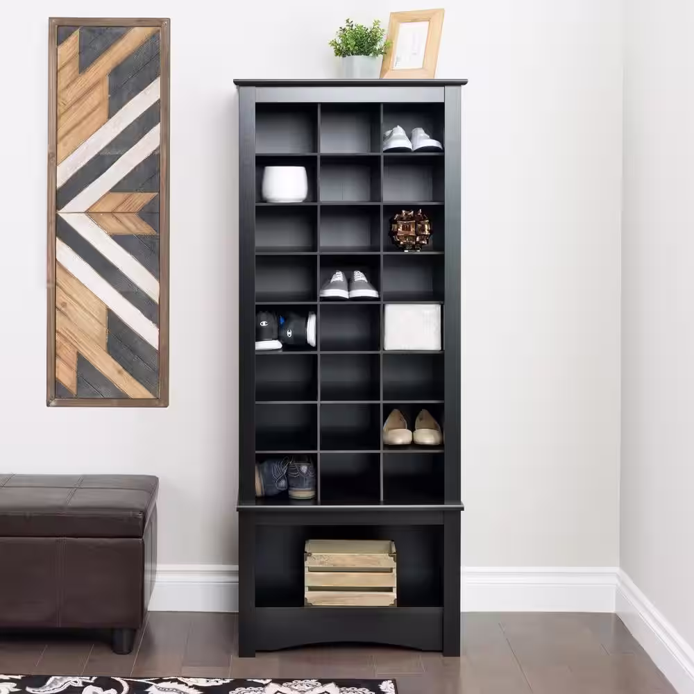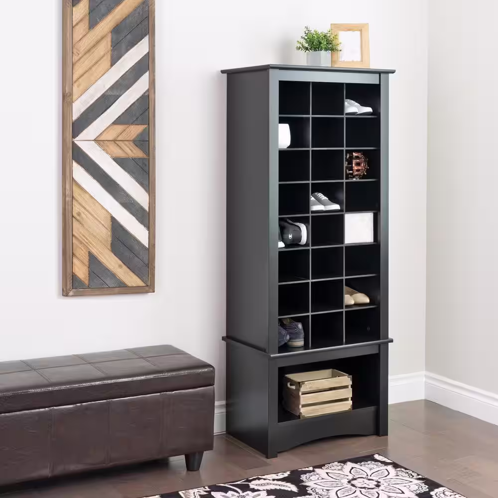 Prepac 61.25 in. H x 24.75 in. W x 15.75 in. D Black Wood 24-Cube Organizer