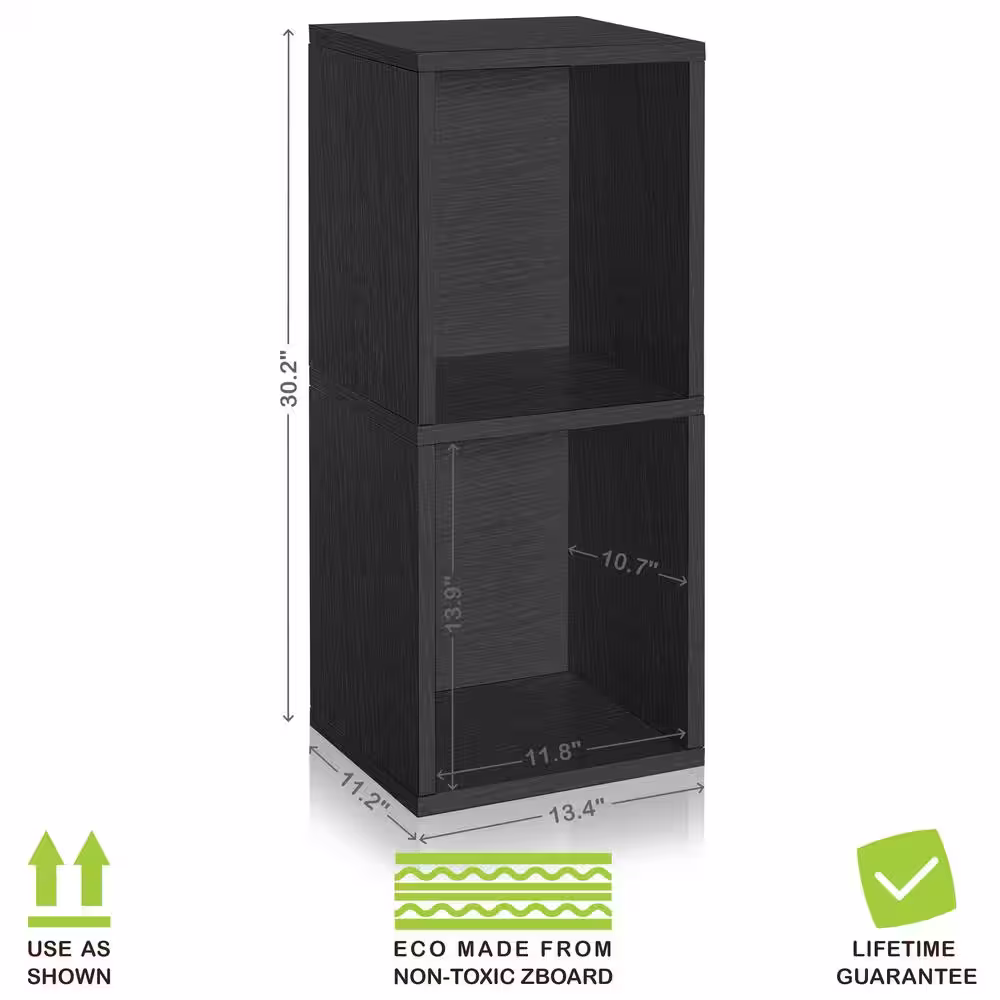 Way Basics 30.2 in. H x 13.4 in. W x 11.2 in. D Black Recycled Materials 2-Cube Organizer