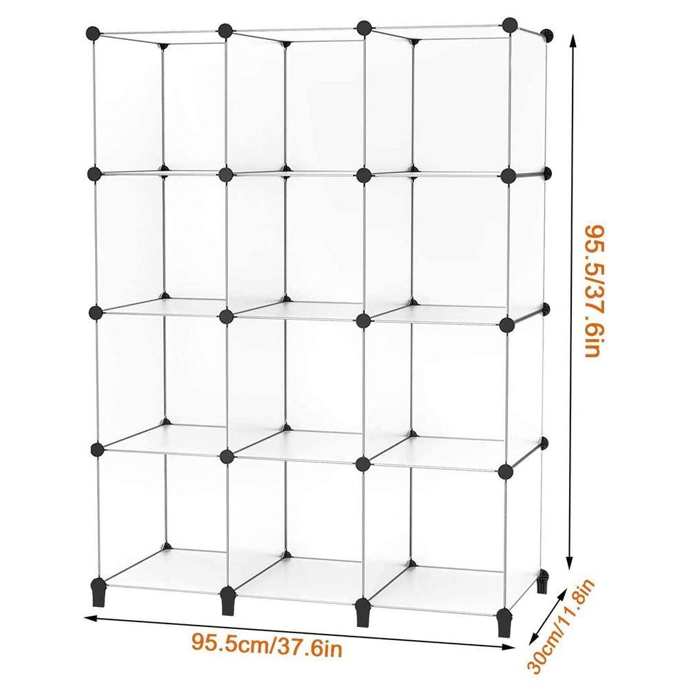 None 47.2 in. H x 37.6 in. W x 11.8 in. D Clear Plastic 12- Cube Organizer