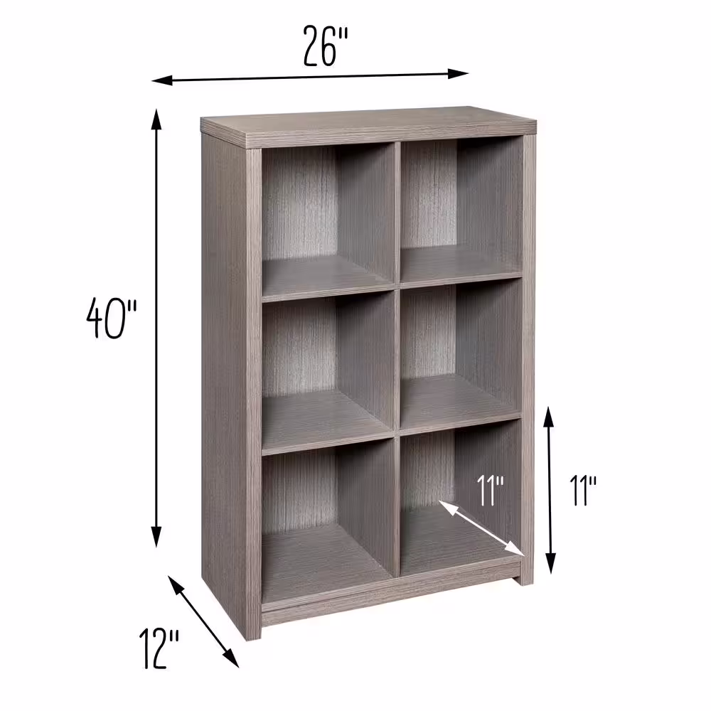 Honey-Can-Do 39 in. H x 25.6 in. W x 11.6 in. D Gray MDF Laminate 6-Cube Organizer