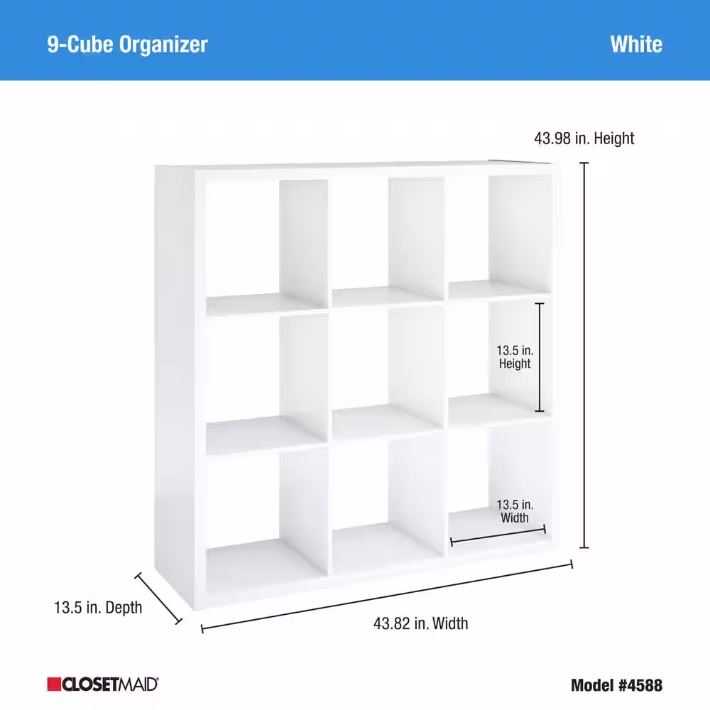 ClosetMaid 43.98 in. H x 43.82 in. W x 13.50 in. D White Wood Large 9- Cube Organizer