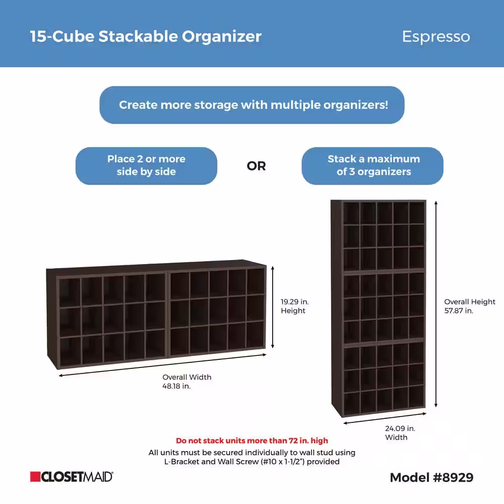 ClosetMaid 19 in. H x 24 in. W x 12 in. D Espresso Wood Look 15-Cube Storage Organizer