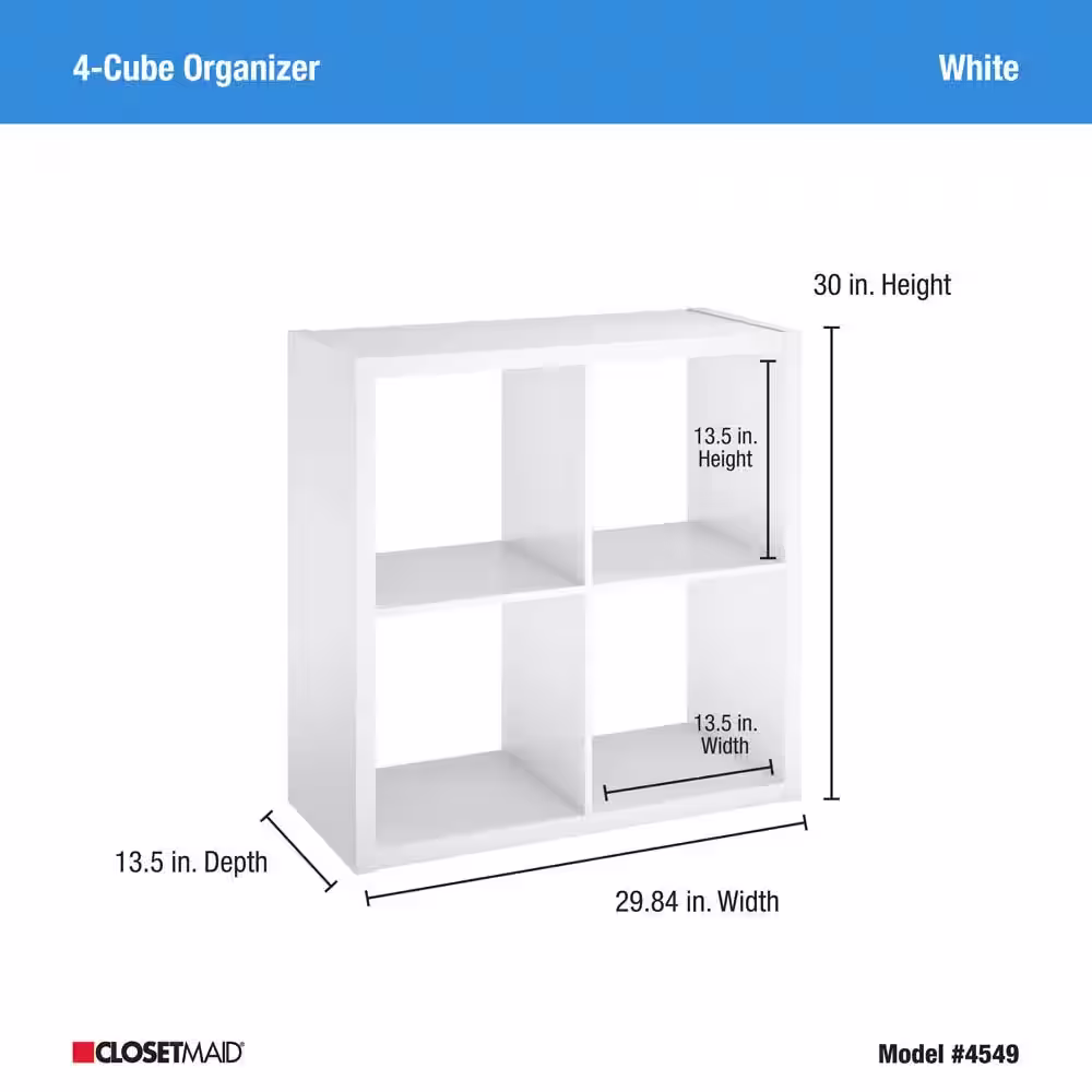 ClosetMaid 30 in. H x 29.84 in. W x 13.50 in. D White Wood Large 4-Cube Organizer
