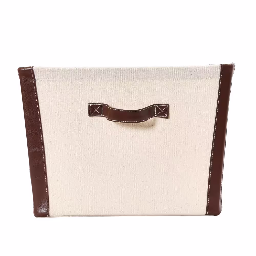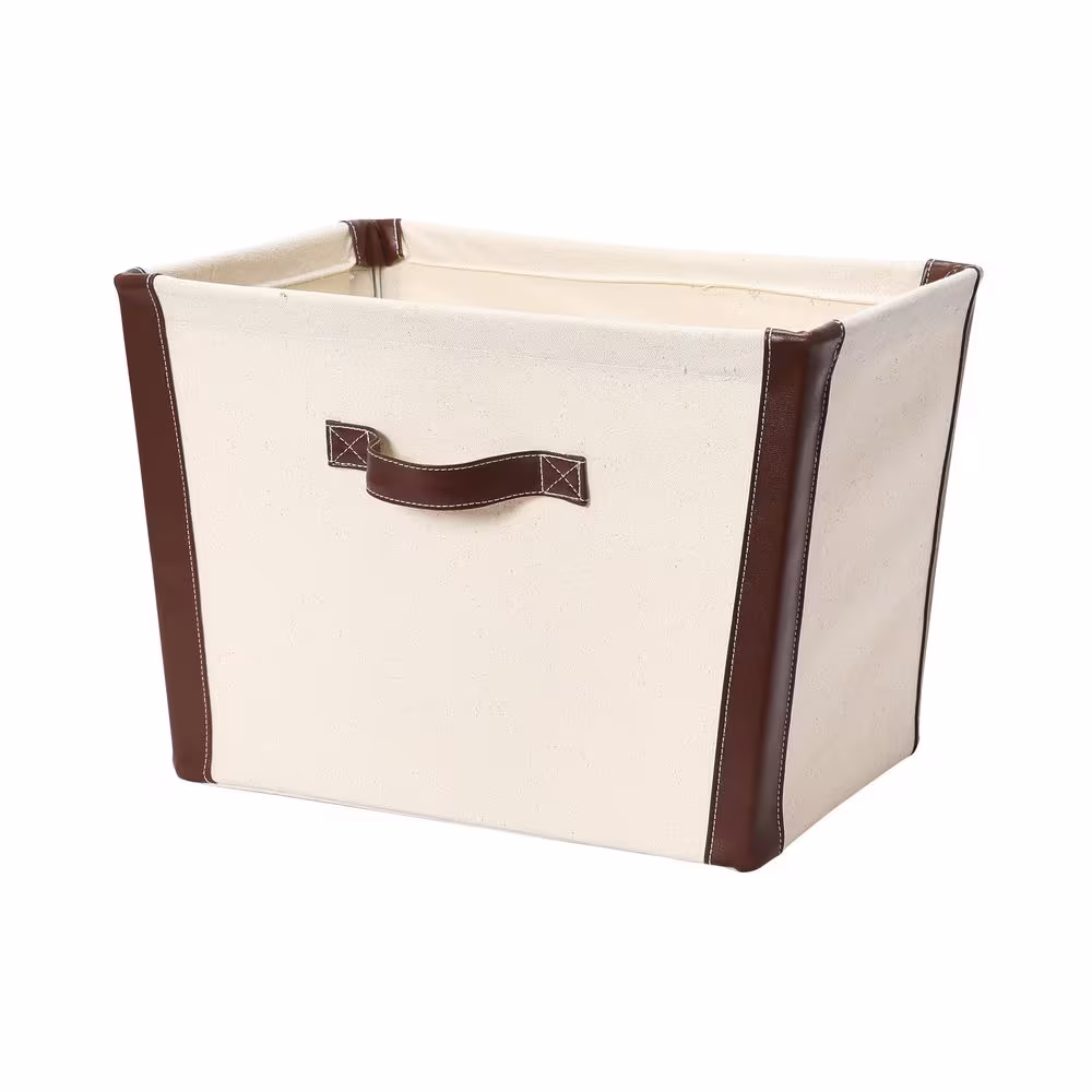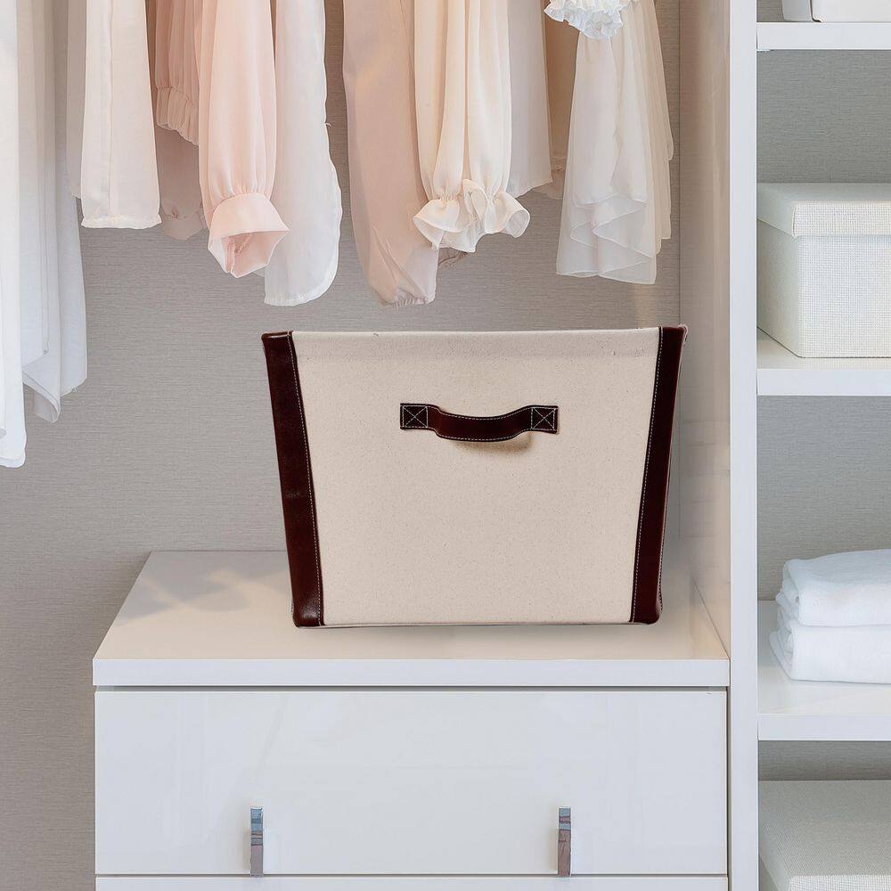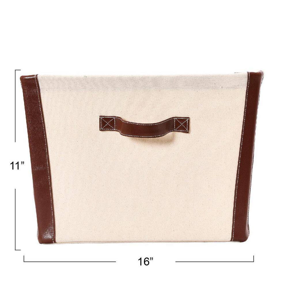 HOUSEHOLD ESSENTIALS 16x11x12 Ivory Canvas Cube Storage Bin with Vegan Leather Trim