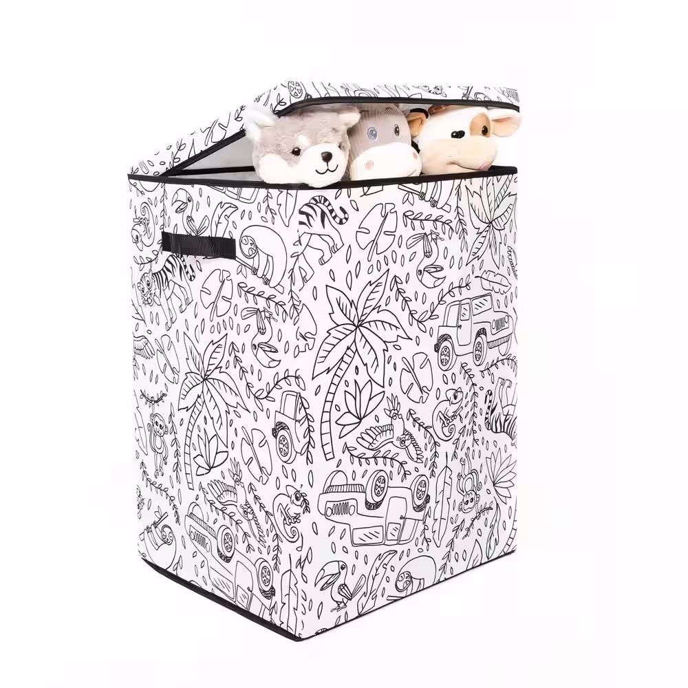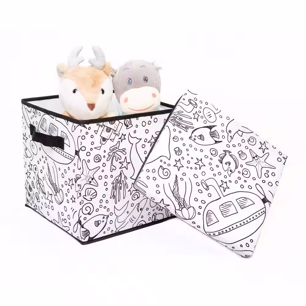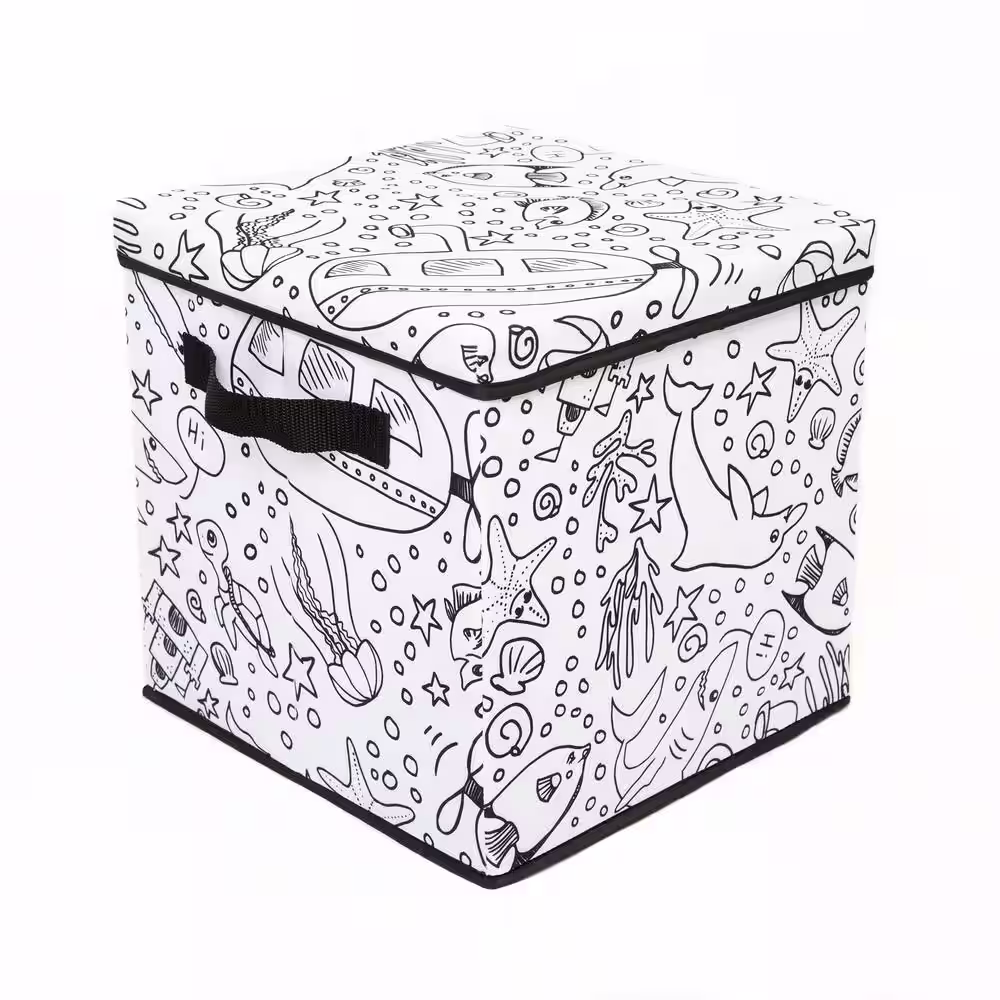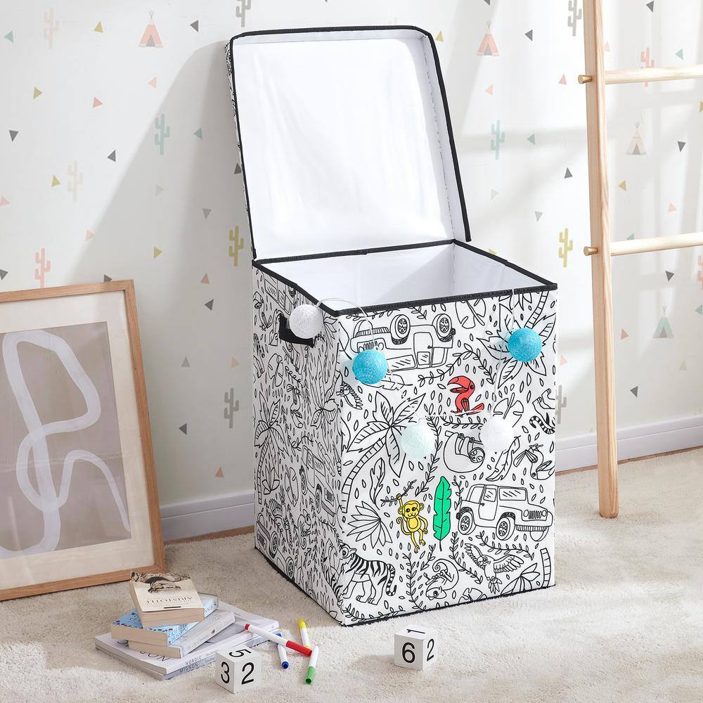 BAUM Kid's White Coloring Cube Storage Bin Hamper with Washable Markers (4-Pack)