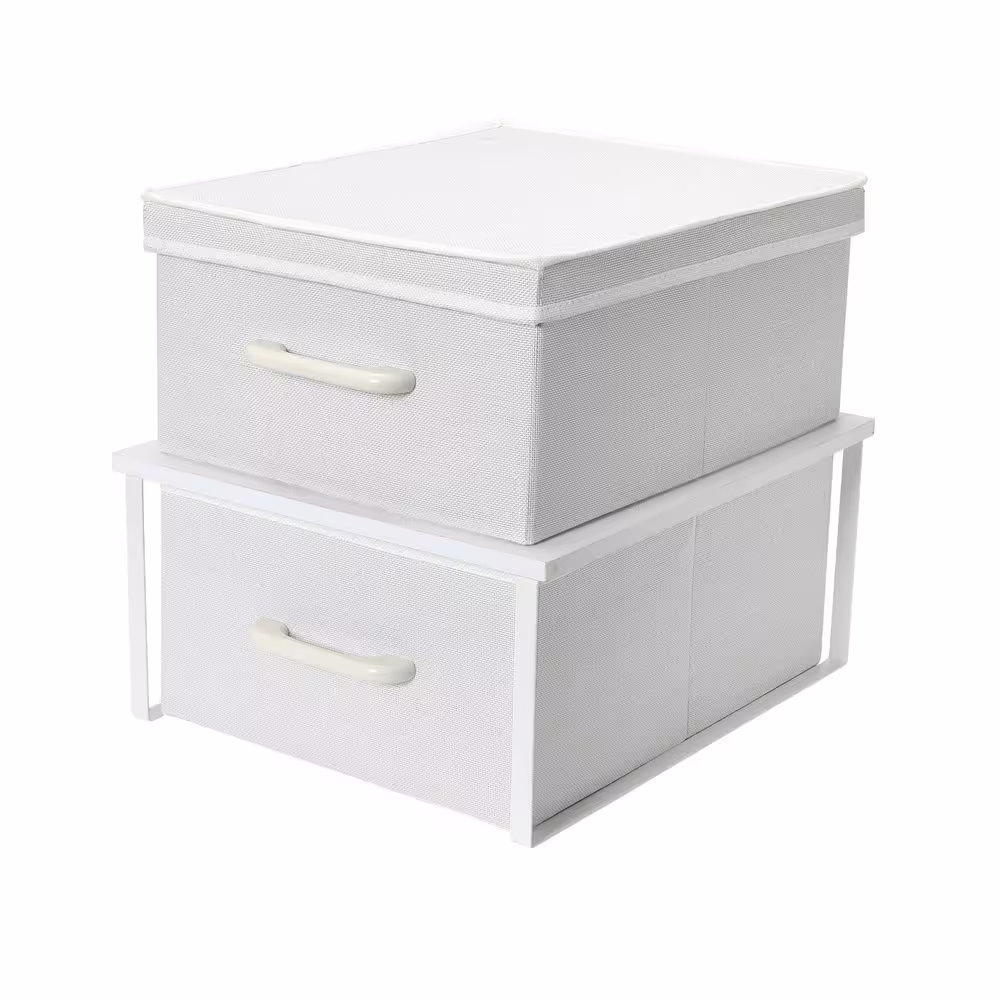 HOUSEHOLD ESSENTIALS Set of 2 White Stacking Cube Storage Bins with Laminate Top