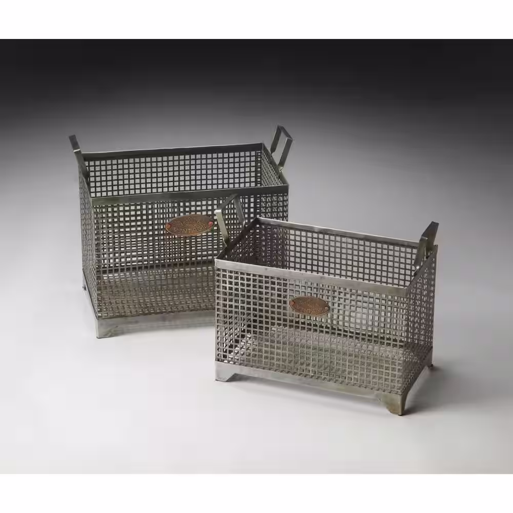 HomeRoots 11 in. H x 16.5 in. W x 14 in. D Gray Steel Cube Storage Bin 2 -Pack