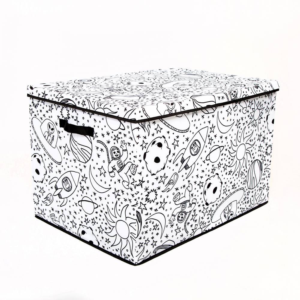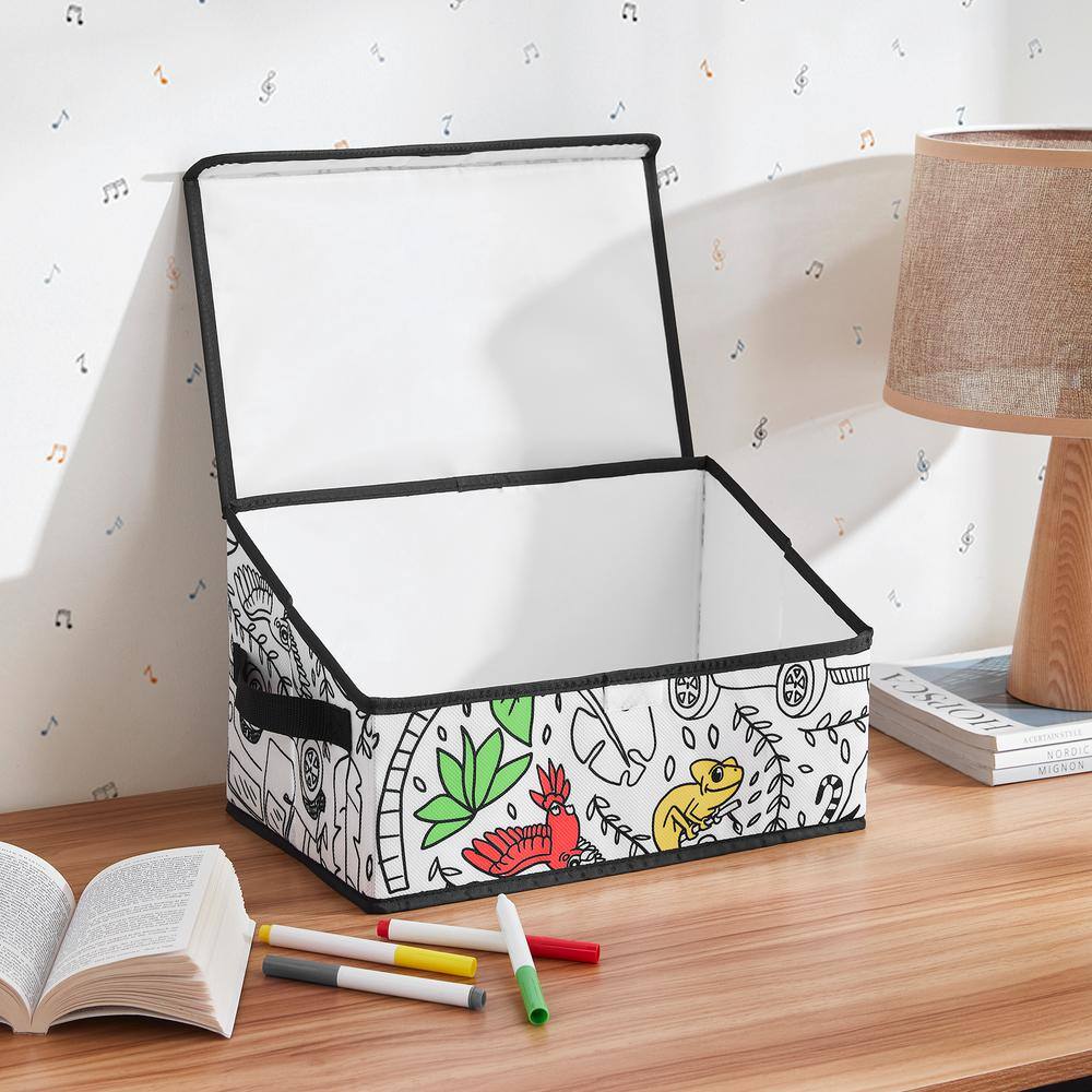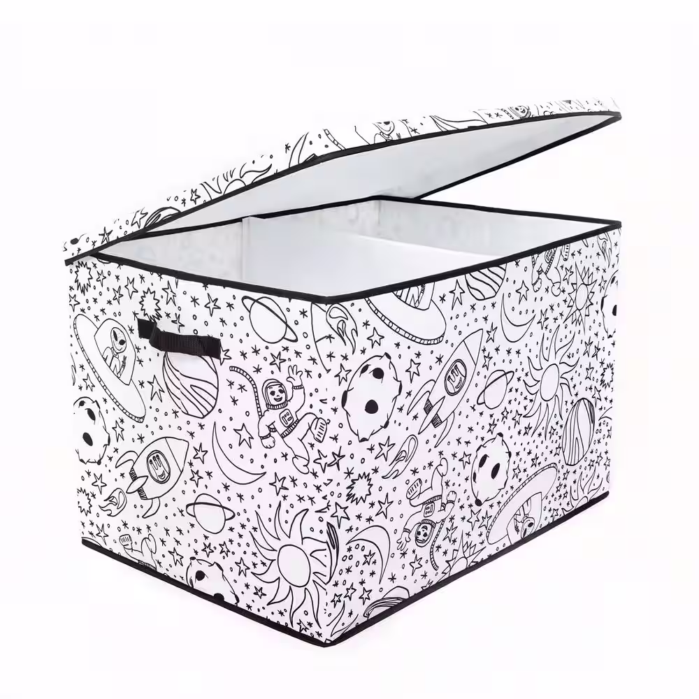 BAUM Kid's White Coloring Cube Storage Bin Coloring with Lids and with 4-Pack of Washable Markers
