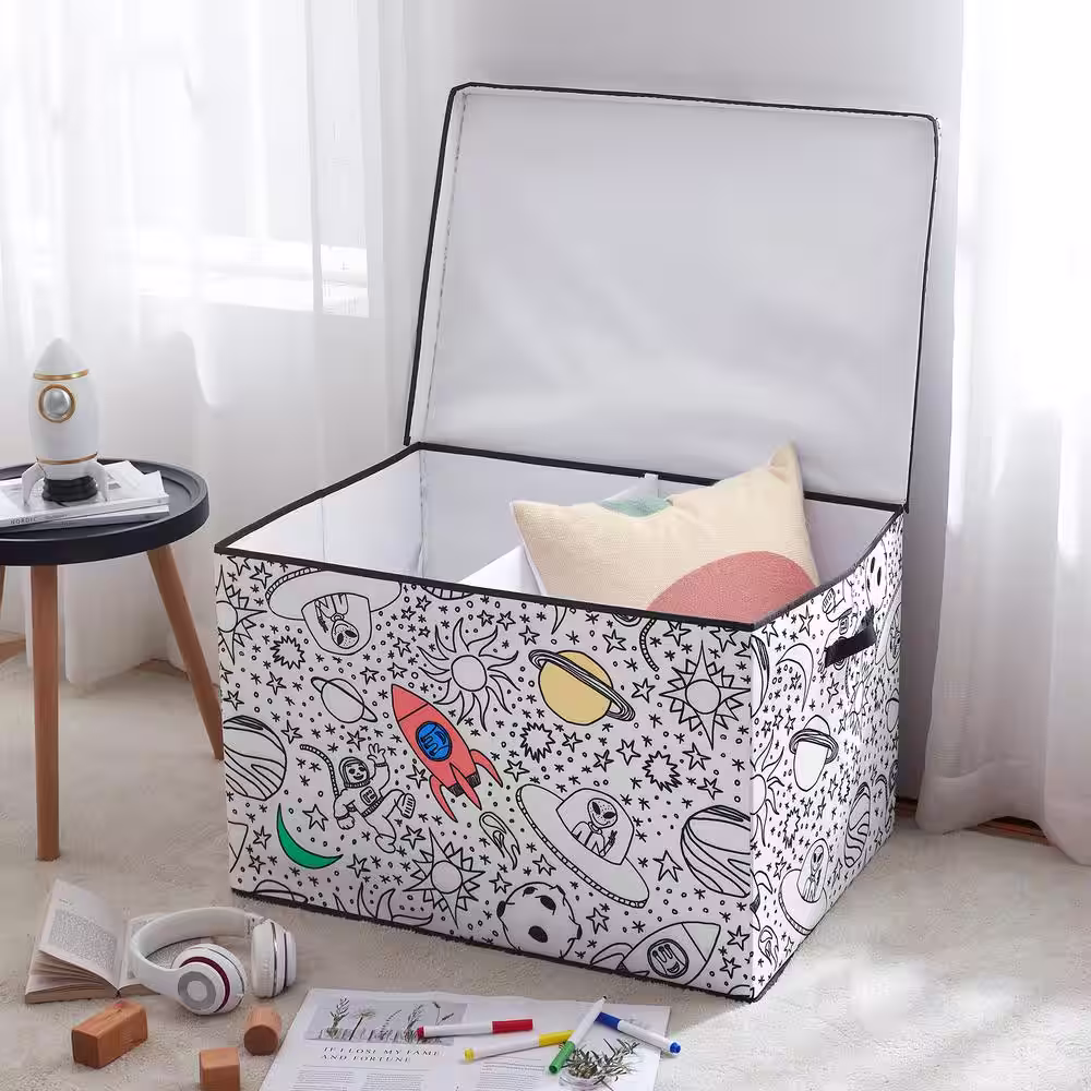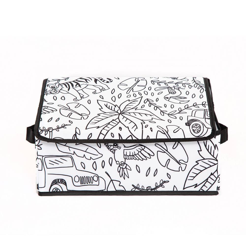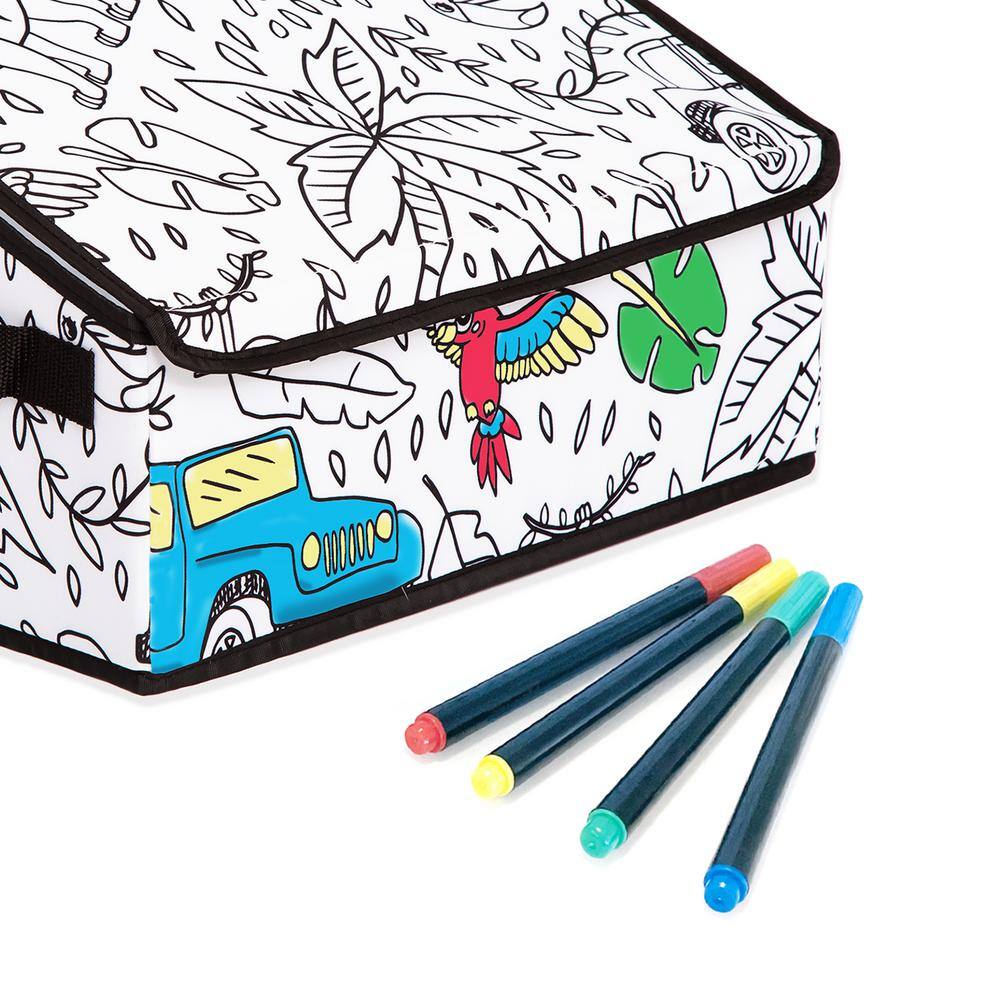BAUM Kid's Coloring White Cube Storage Bin with Removable Divider and 4-Pack of Washable Marker