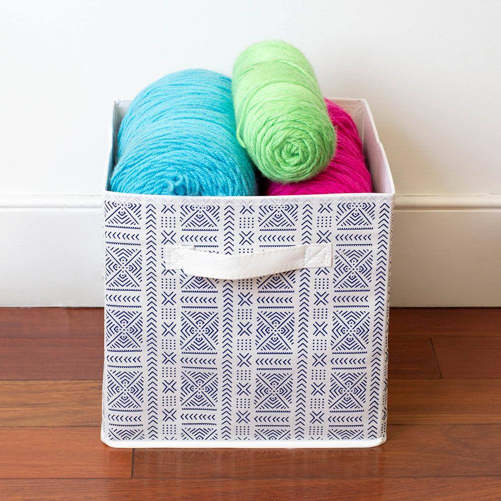 Home Basics 10.5 in. H x 10.5 in. W x 10.5 in. D Blue Fabric Cube Storage Bin
