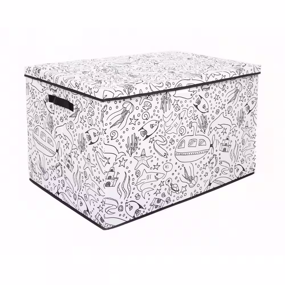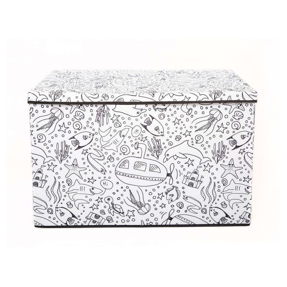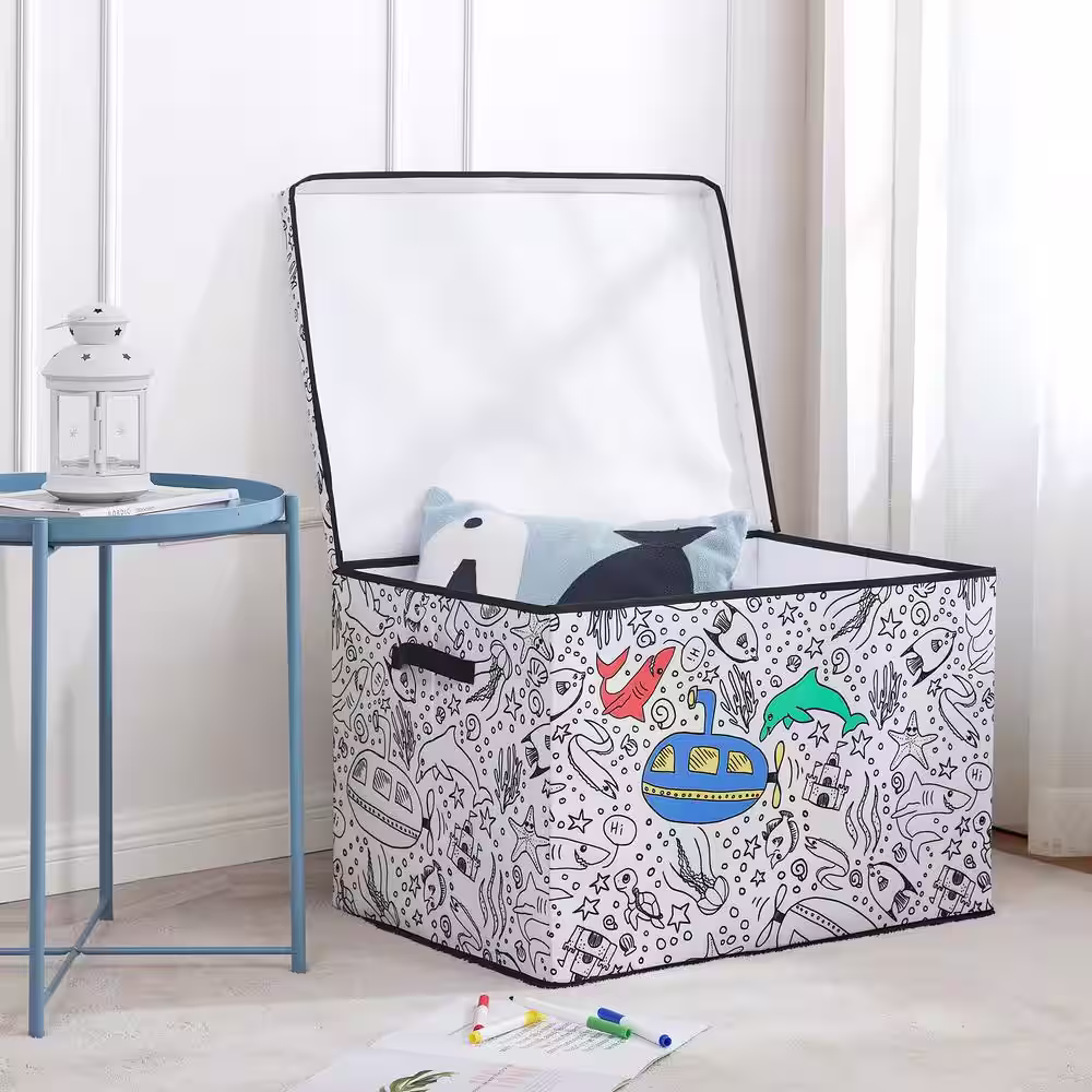 BAUM Kid's Coloring Cube Storage Bin with Removable Divider and 4-Pack of Washable Marker