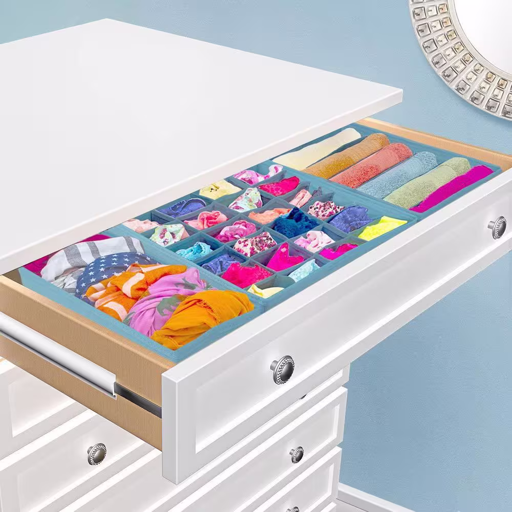 Honey-Can-Do 11 in. H x 13 in. W x 14 in. D Blue Canvas Cube Storage Bin 2-Pack
