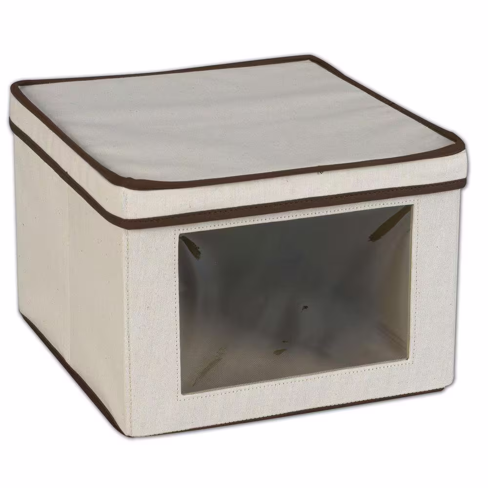 HOUSEHOLD ESSENTIALS 8.5 in. H x 12.25 in. W x 13.25 in. D Off White Canvas Cube Storage Bin