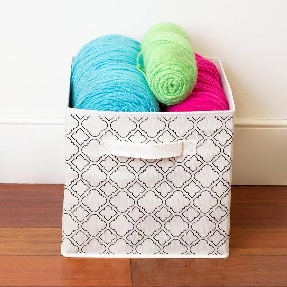 Home Basics 10.5 in. H x 10.5 in. W x 10.5 in. D White Fabric Cube Storage Bin