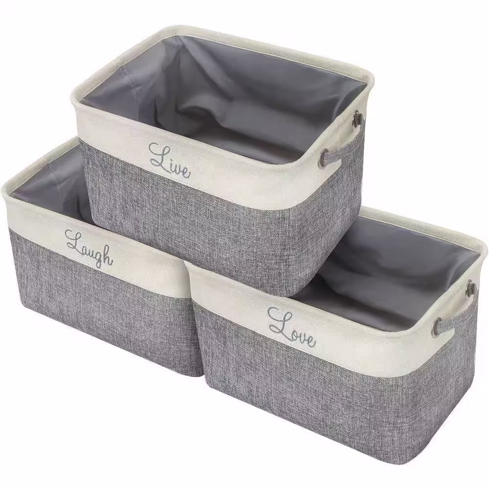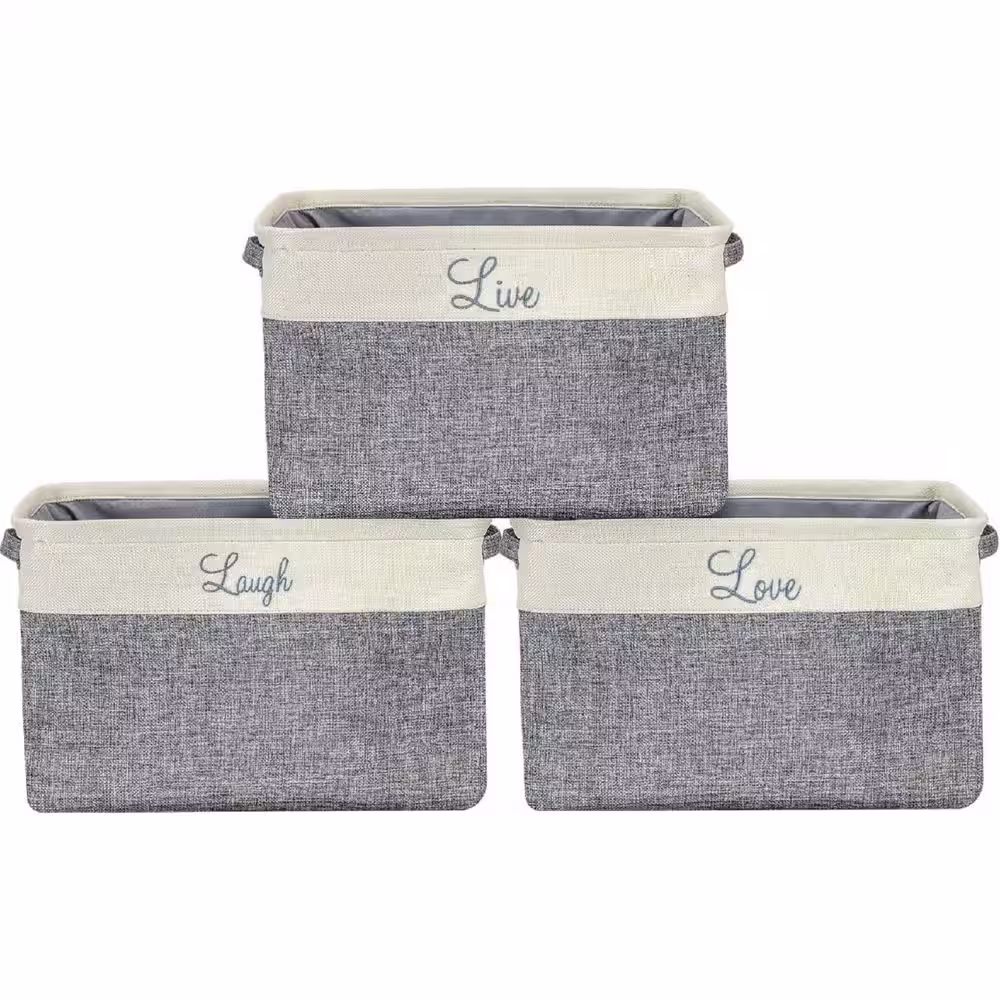Sorbus 9 in. L x 10 in. W x 15 in. H Gray Script text Fabric Cube Storage Bin with Carry Handles 3-Pack