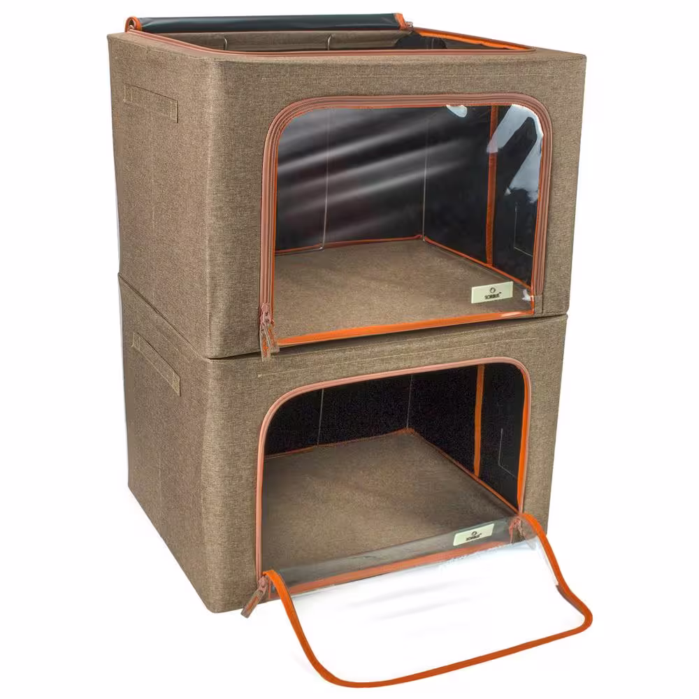 Sorbus 13.75 in. H x 19.75 in. W x 16 in. D Brown Cube Storage Bin Boxes with Window and Zipper (2 Pack)