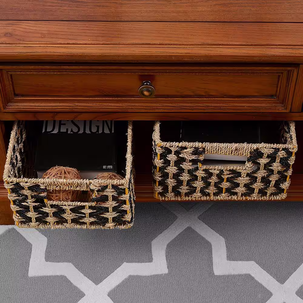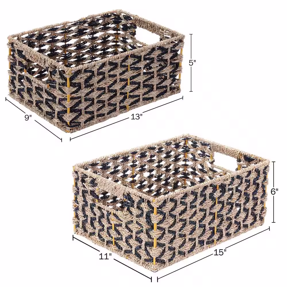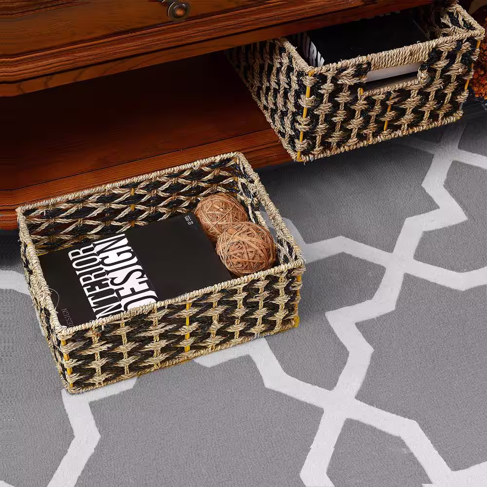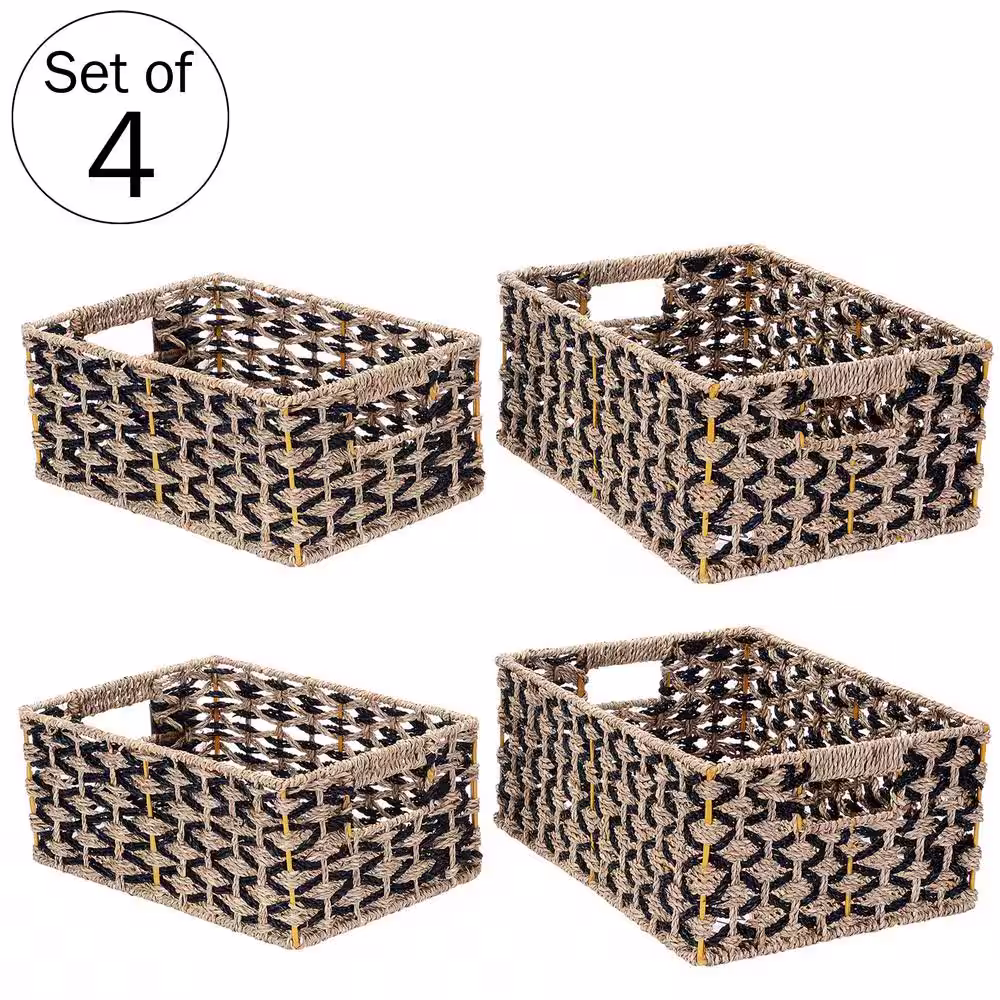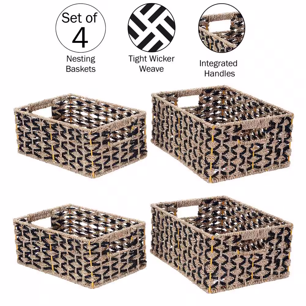 None 6 in. H x 11 in. W x 15 in. D Black and Natural Water Hyacinth Nesting Cube Storage Bins (Set of 4)