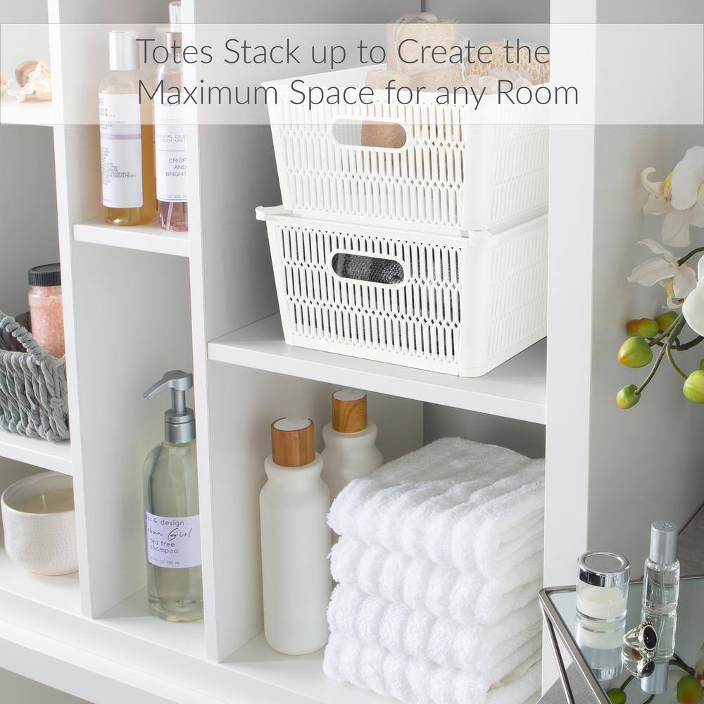 SIMPLIFY 4.72 in. H x 9.06 in. W x 11.02 in. D White Plastic Cube Storage Bin 2-Pack