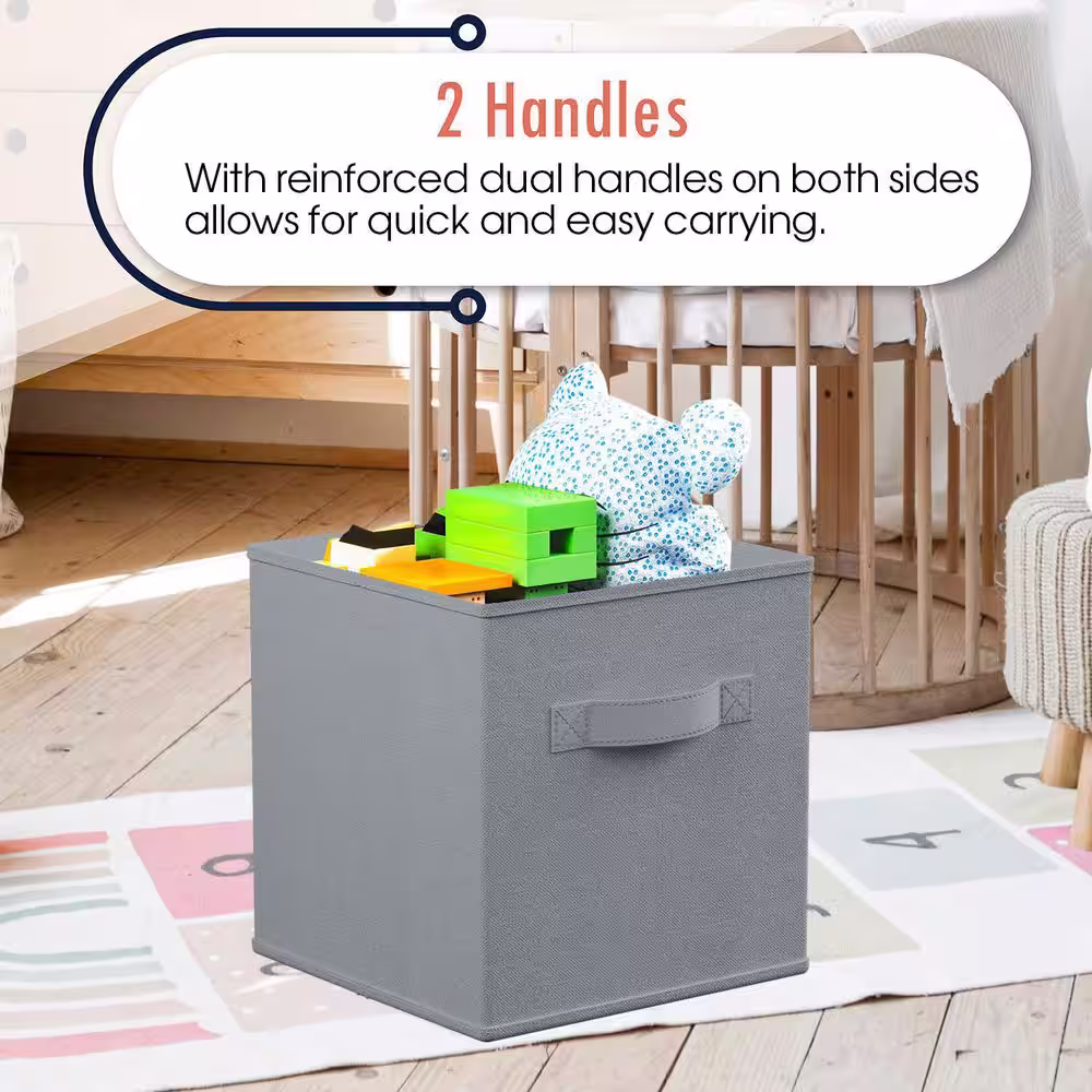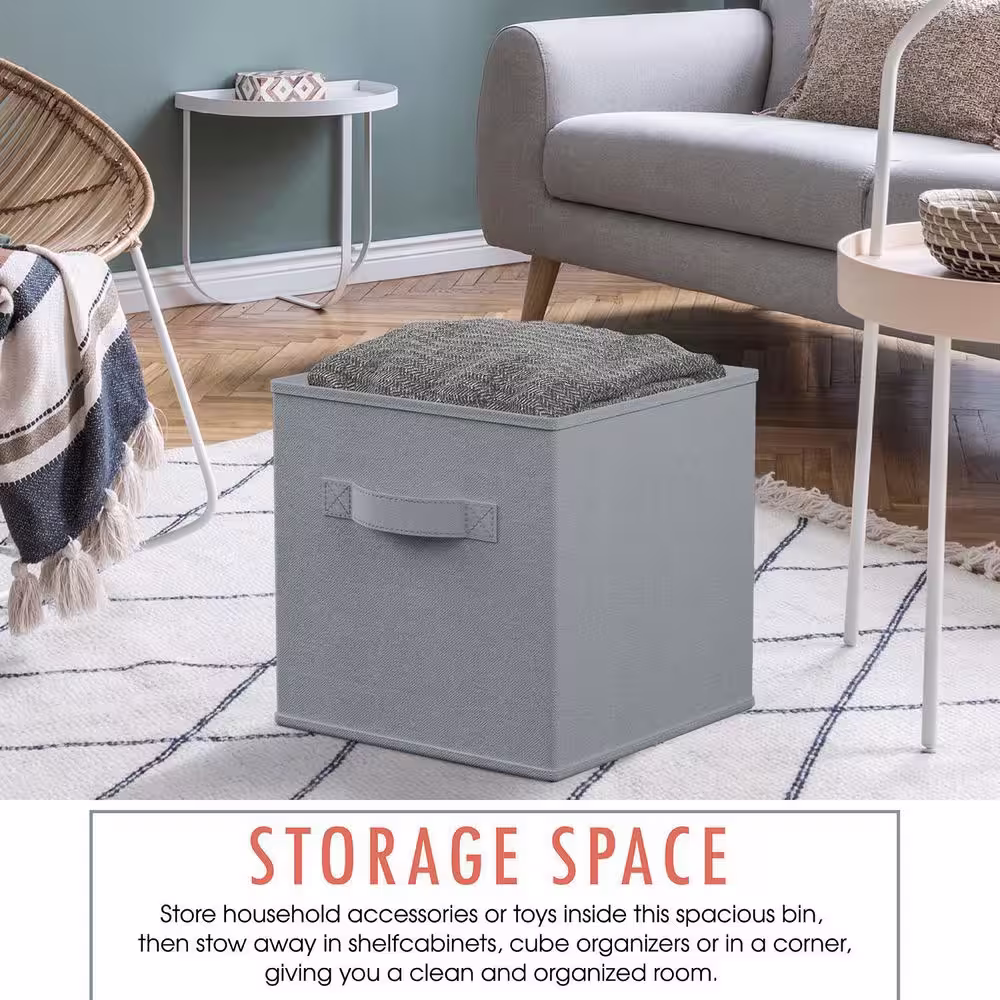 Home Basics 10 in. H x 13 in. W x 15 in. D - Gray Fabric Cube Storage Bin