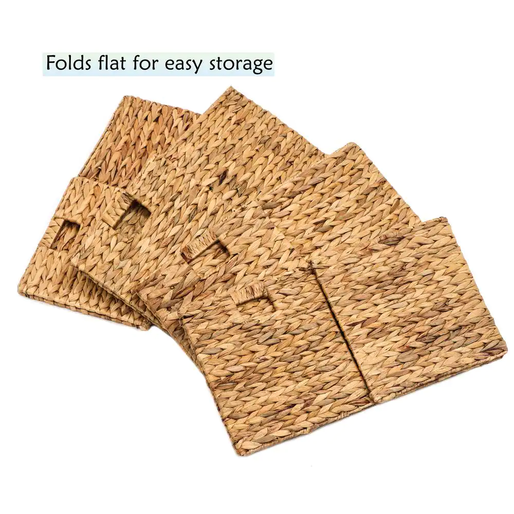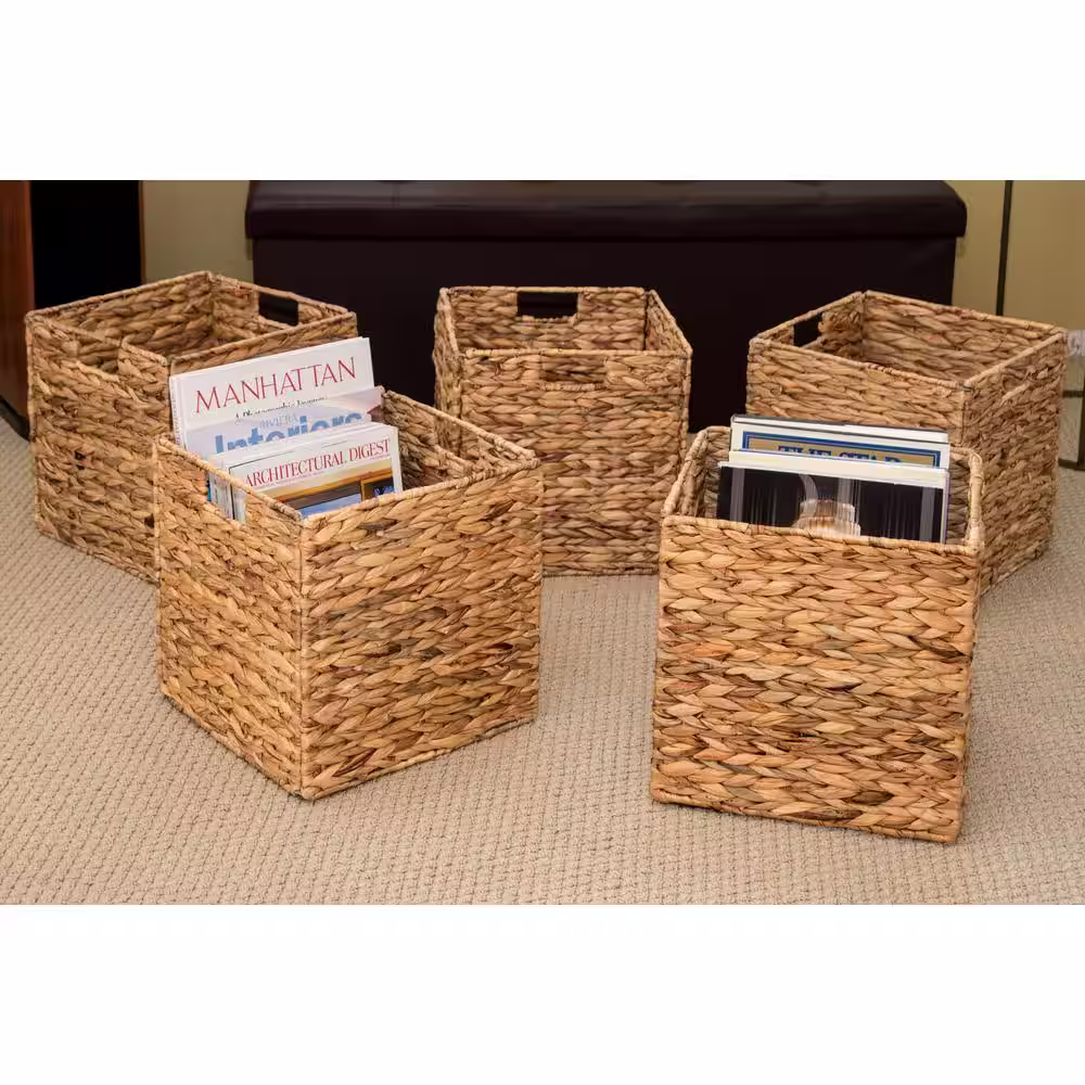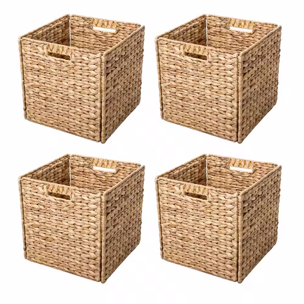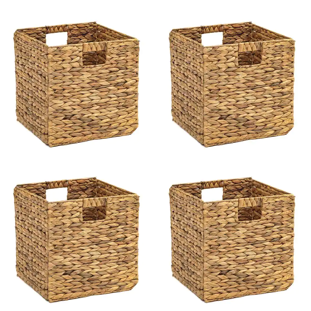 Trademark Innovations 12 in. H x 12 in. W x 12 in. D Natural Tan Hyacinth Cube Storage Bin (4-Pack)