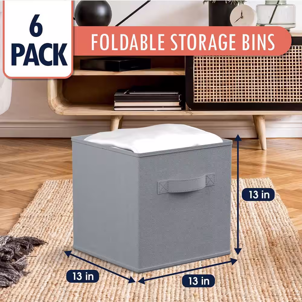 Household Essentials 11 in. H x 11 in. W x 11 in. D Black Fabric Cube Storage Bin 6-Pack