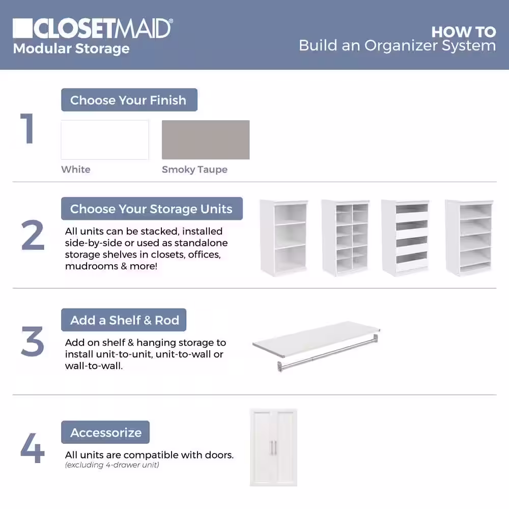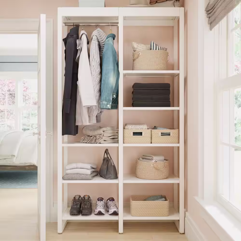 CLOSETS By LIBERTY 46.5 in. W White Adjustable Tower Wood Closet System with 10 Shelves