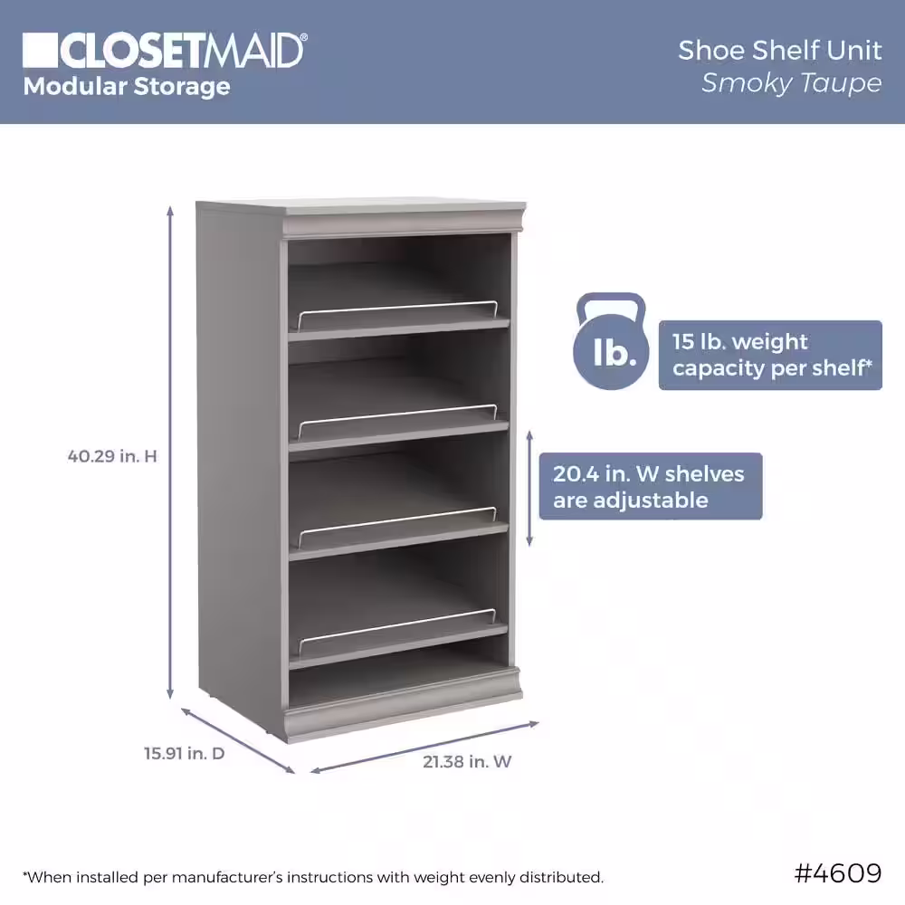 ClosetMaid 21.39 in. W Smoky Taupe Modular Storage Stackable Wood Shoe Shelf Unit