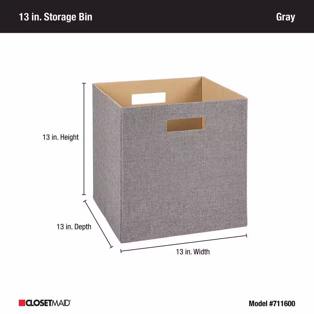 ClosetMaid 11 in. H x 10.5 in. W x 10.5 in. D Gray Fabric Cube Storage Bin