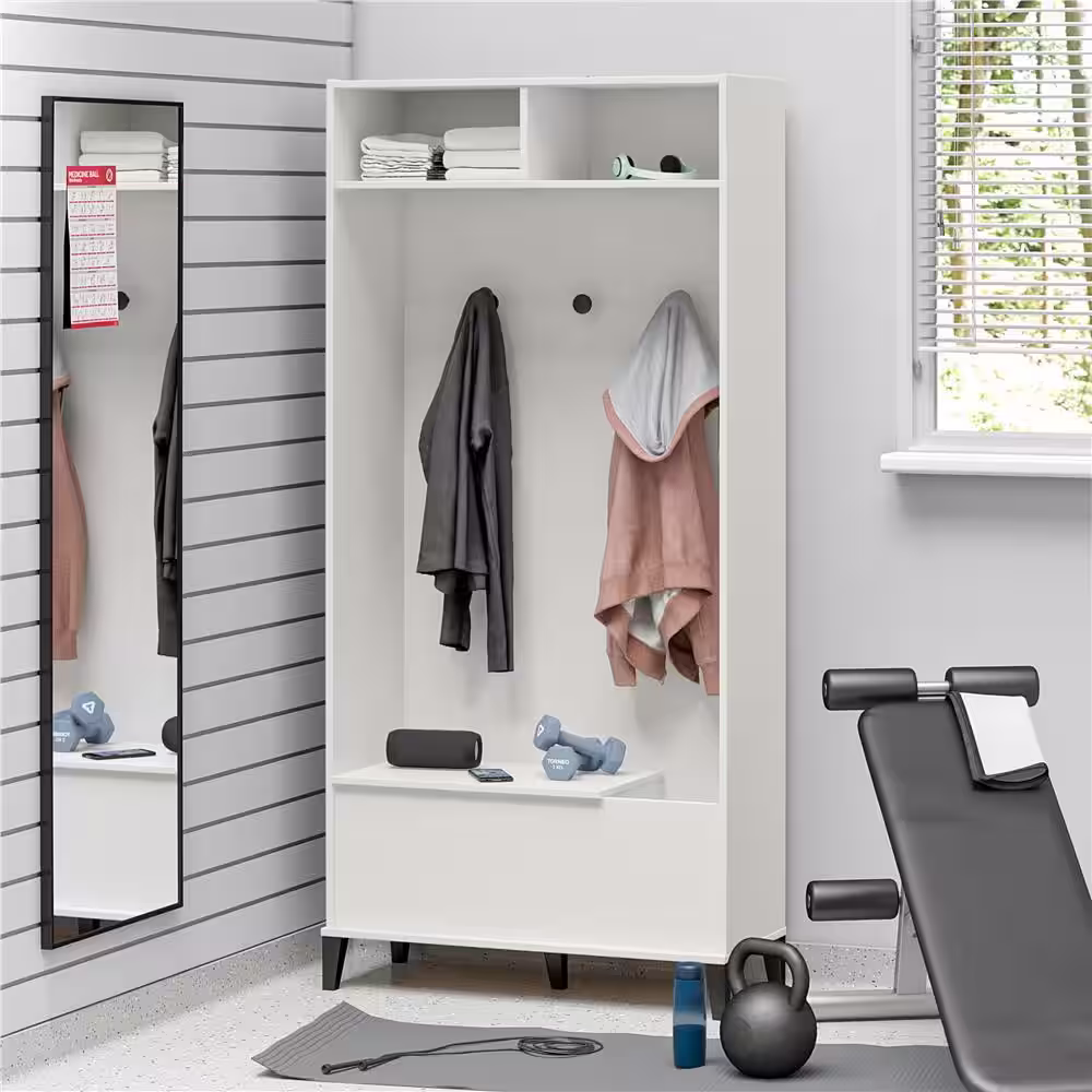 None Flex Gym Cabinet with Yoga Mat Storage and Bench Seat, Graphite, Wood Closet System, 35.67 in W