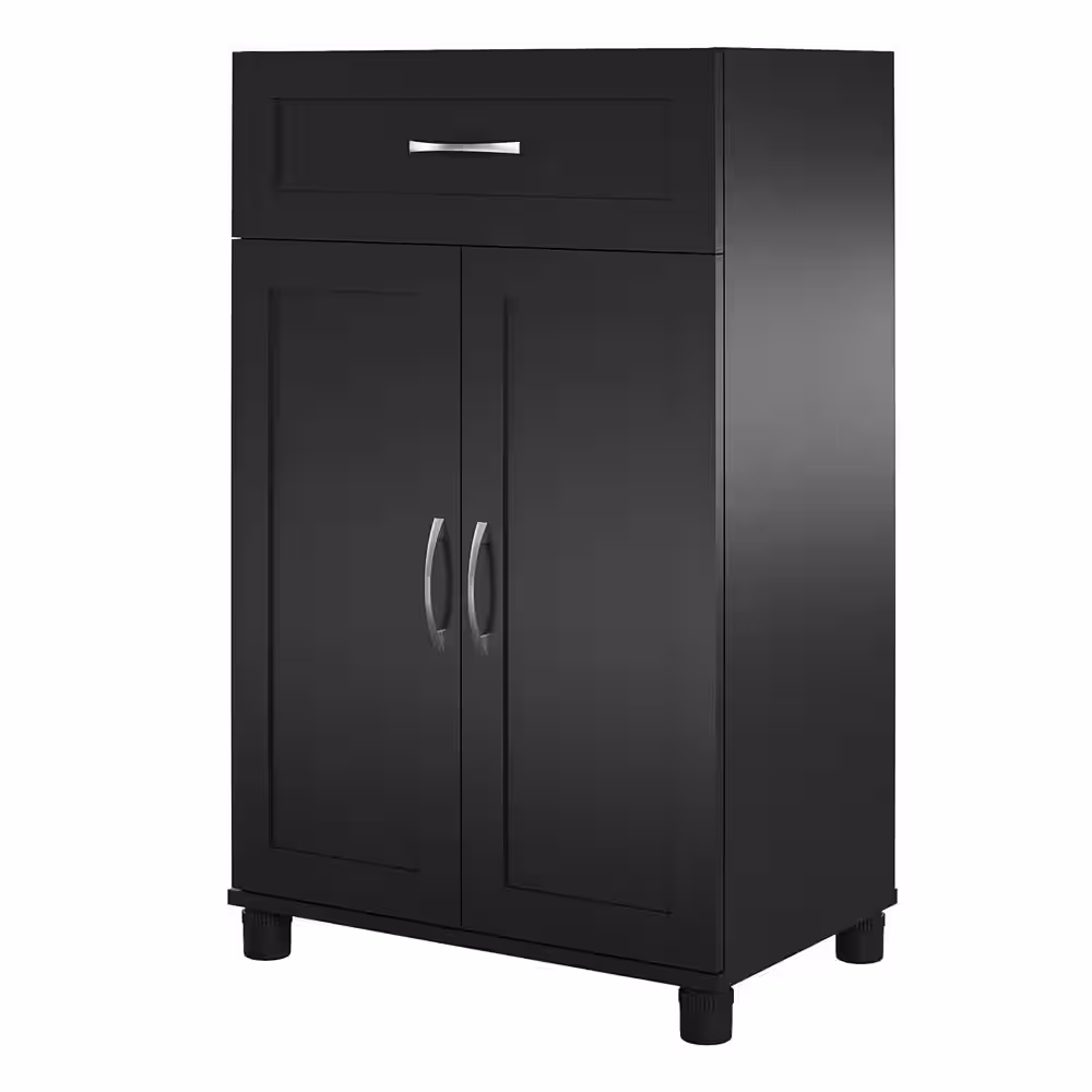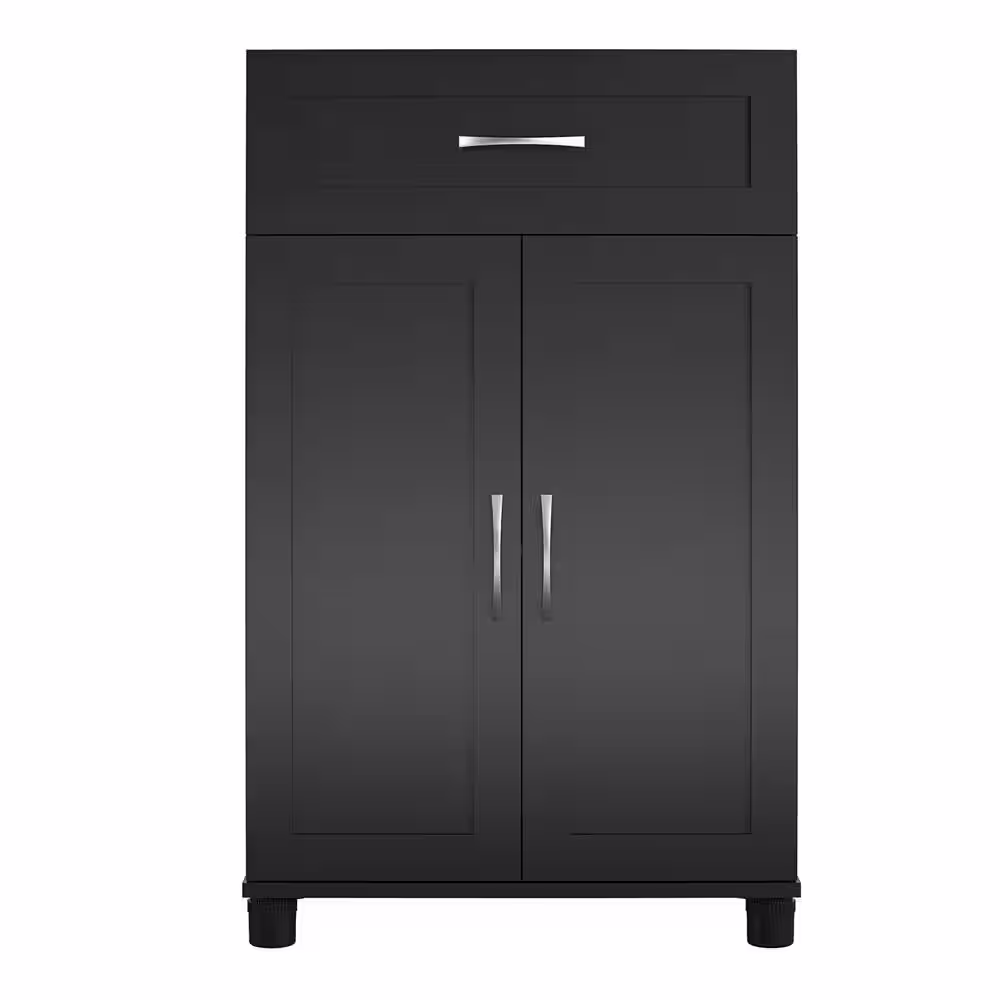 None Lory 23.46 in. W, Framed 2 Door/1 Drawer Base Cabinet, Black, Wood Closet System