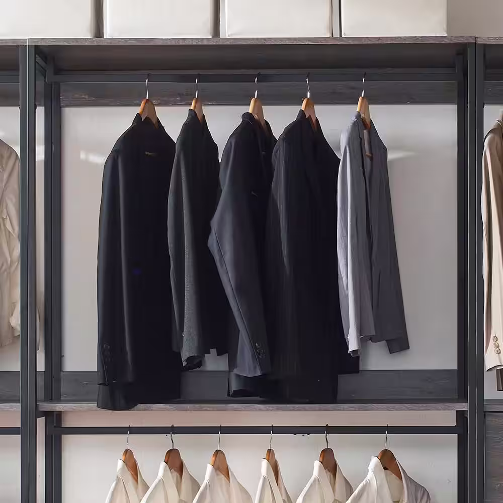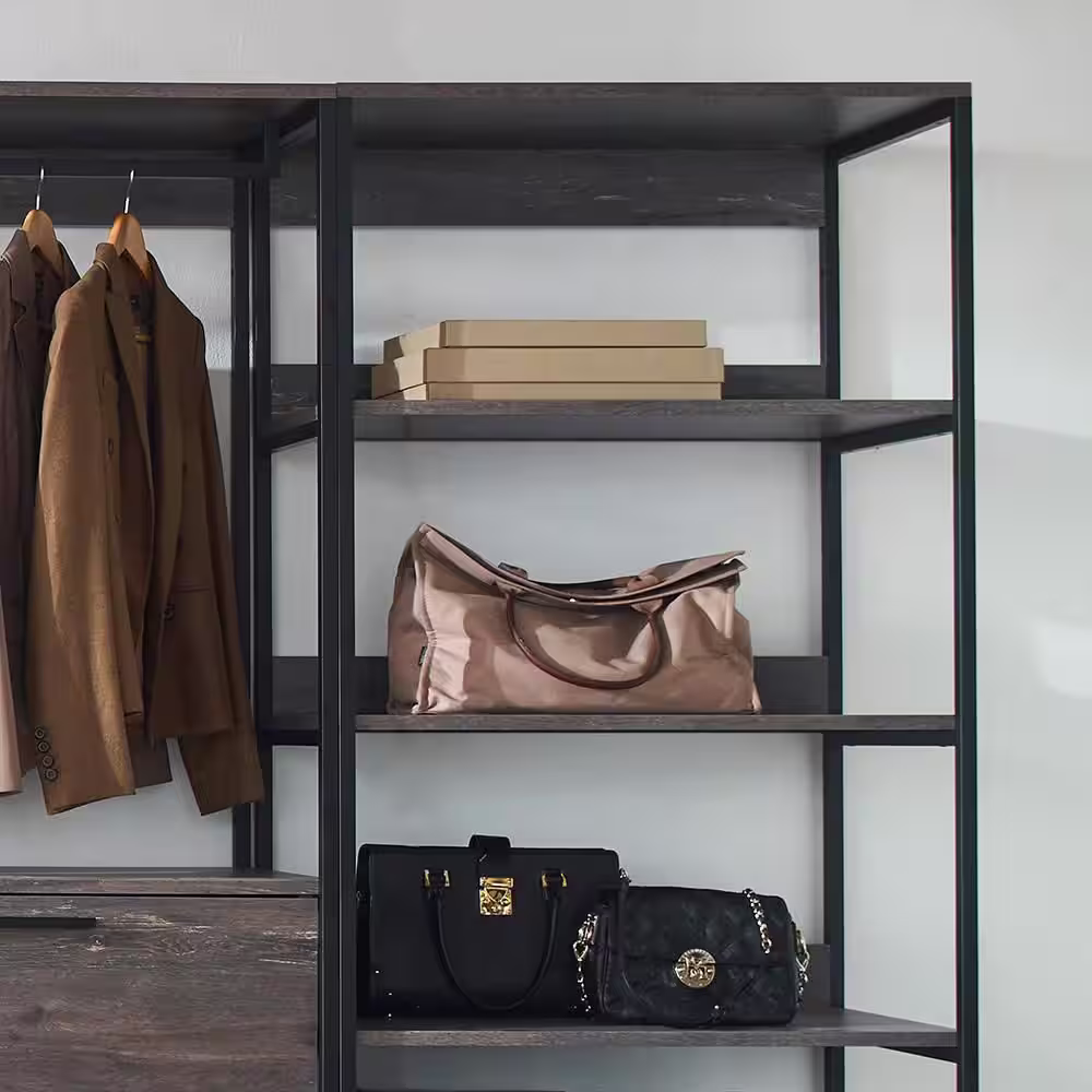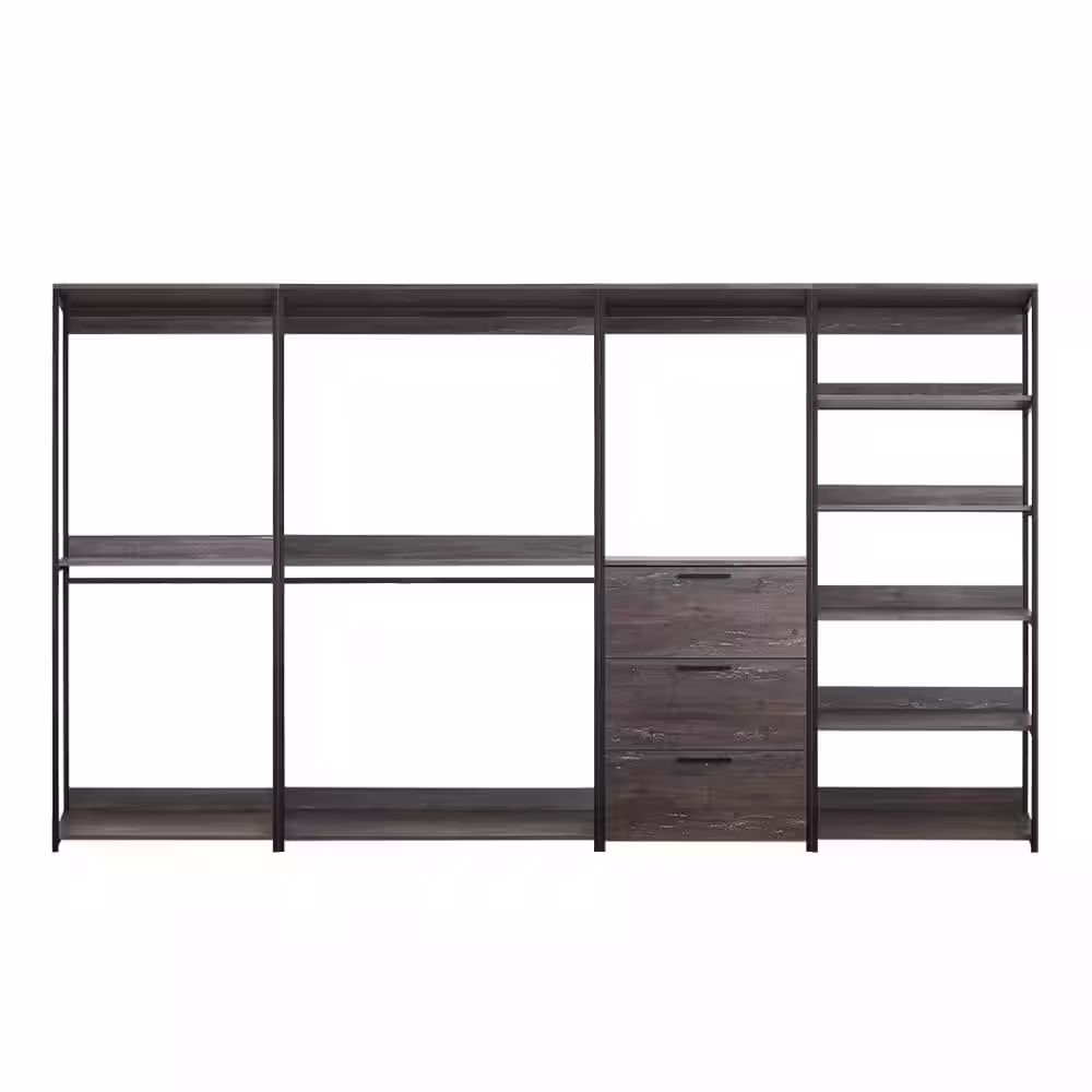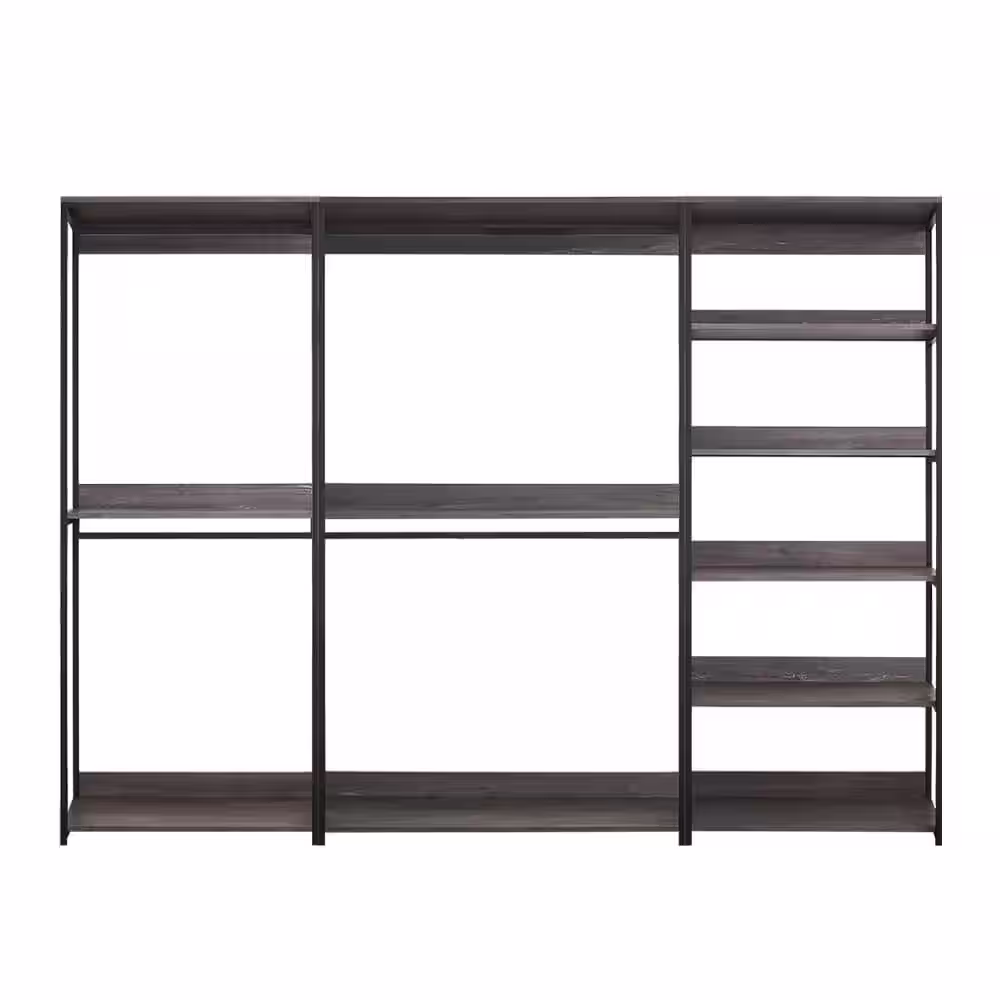 None Monica 96 in. W Rustic Gray Freestanding 3 Tower System 7 -Shelf Walk in Wood Closet System with Metal Frame