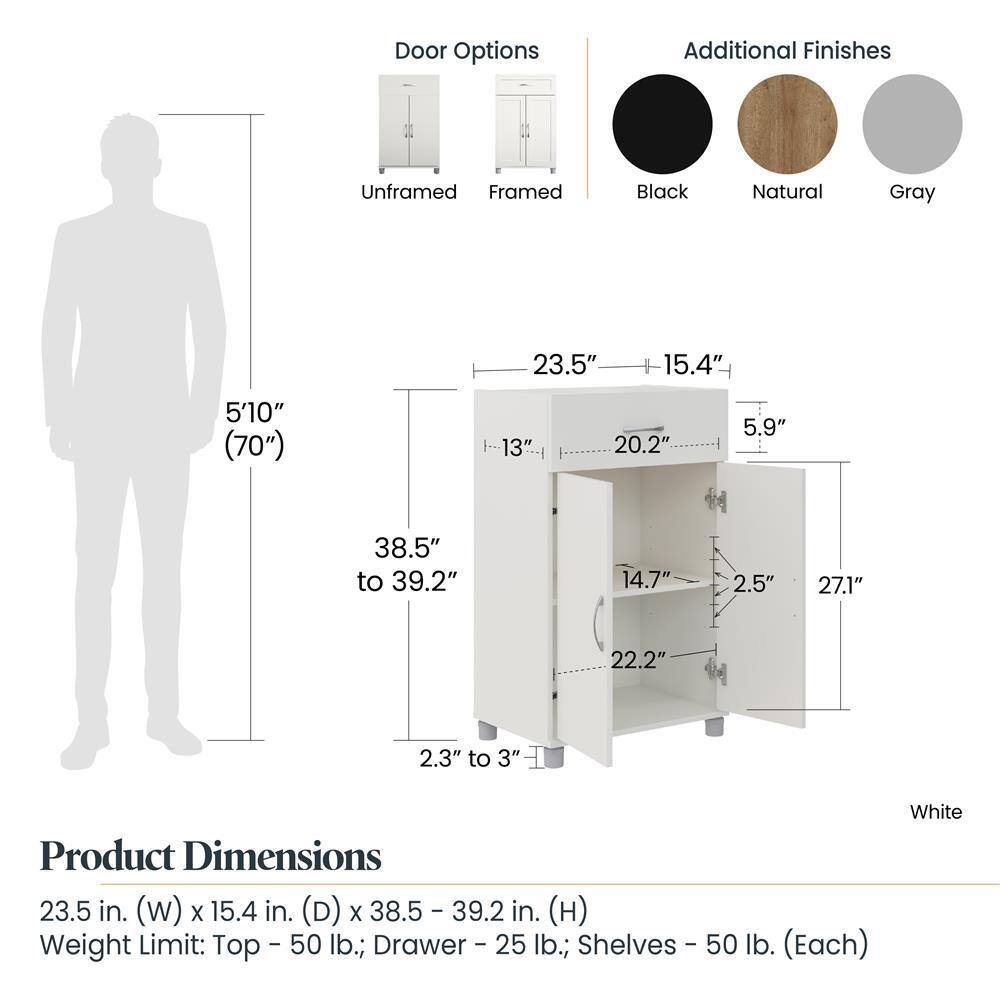 None Lory 24 in. 1-Drawer/2 Door Base Storage Cabinet, Natural, Wood Closet System