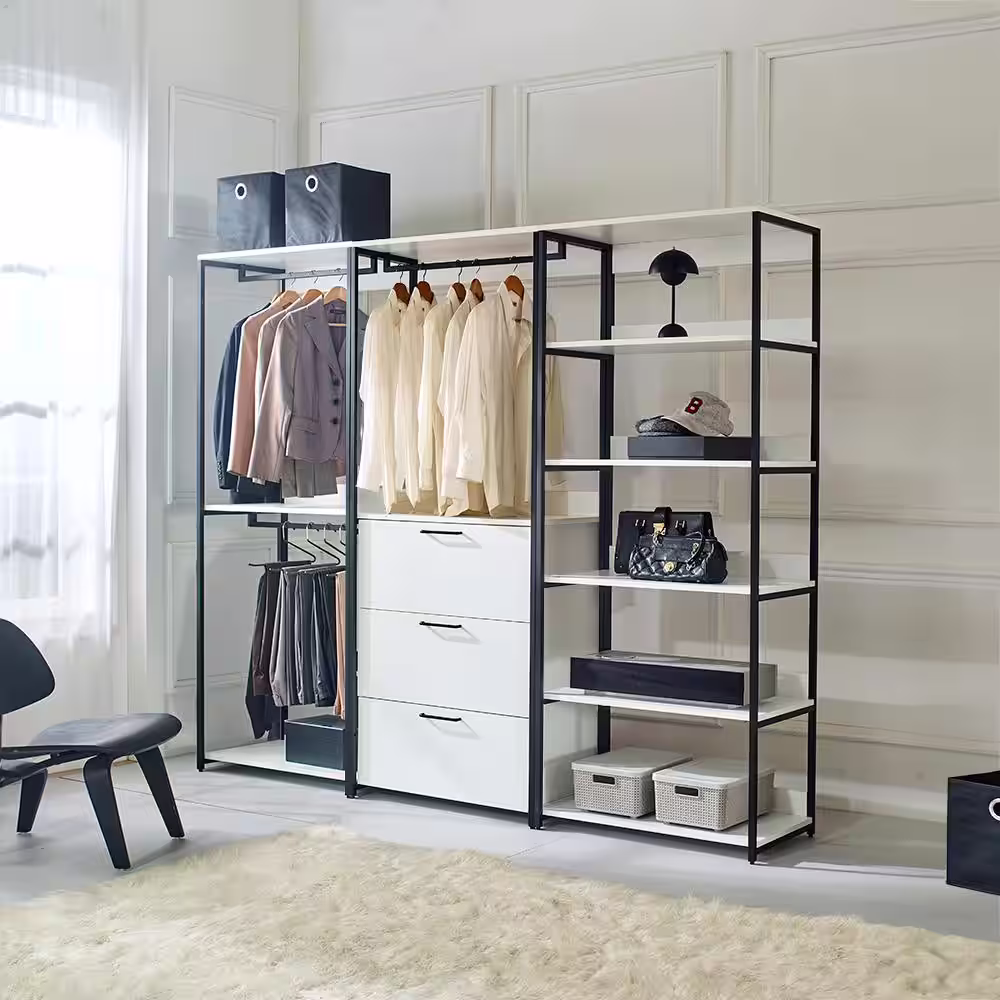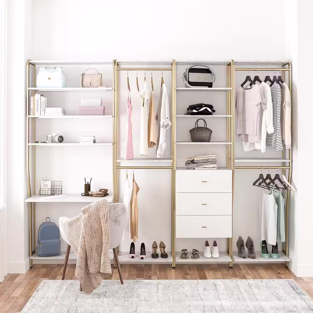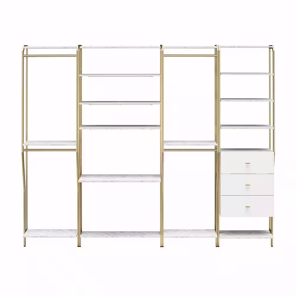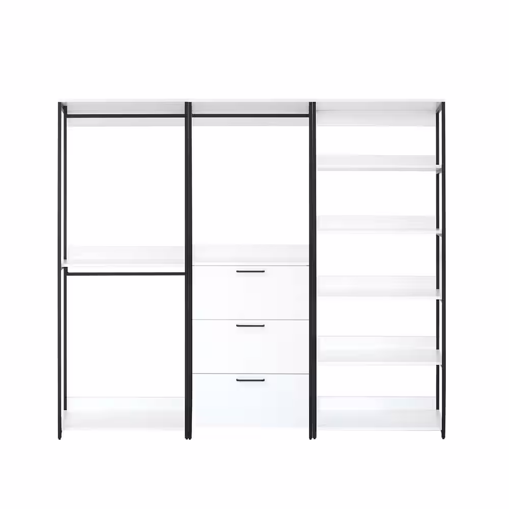 None Fiona 96 in. W White Freestanding 3 Tower System 7 -Shelf Walk in Wood Closet System with Metal Frame