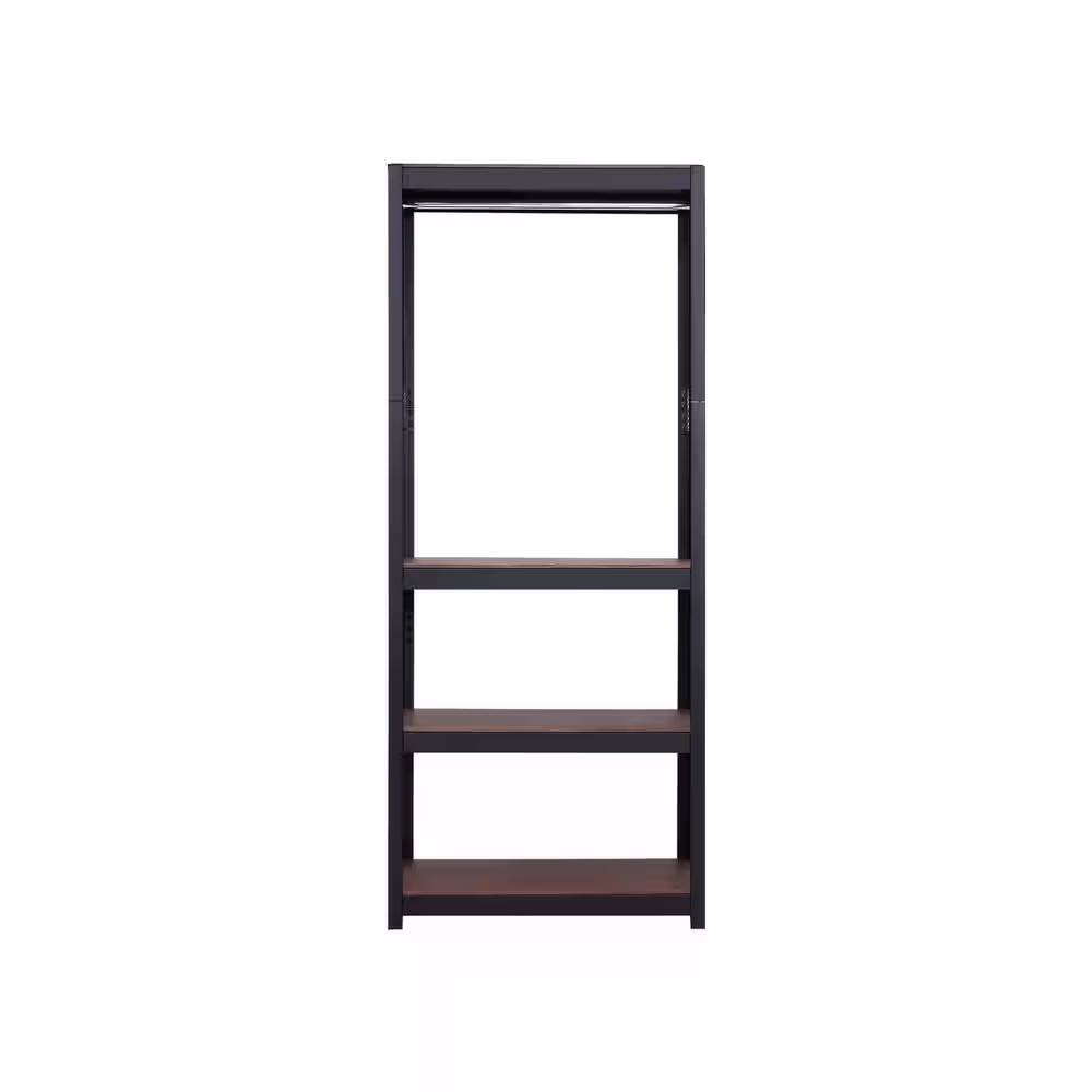 Best Home Fashion Kepsuul 31.50 in. W x 15.75 in. D x 76.75 in. H Black Clothing Rack + 2-Shelf Wood Closet System