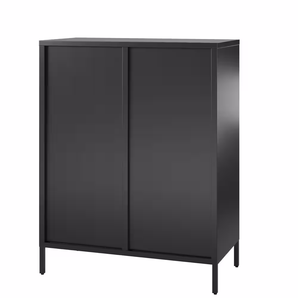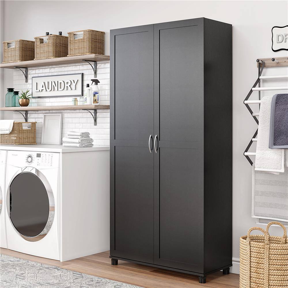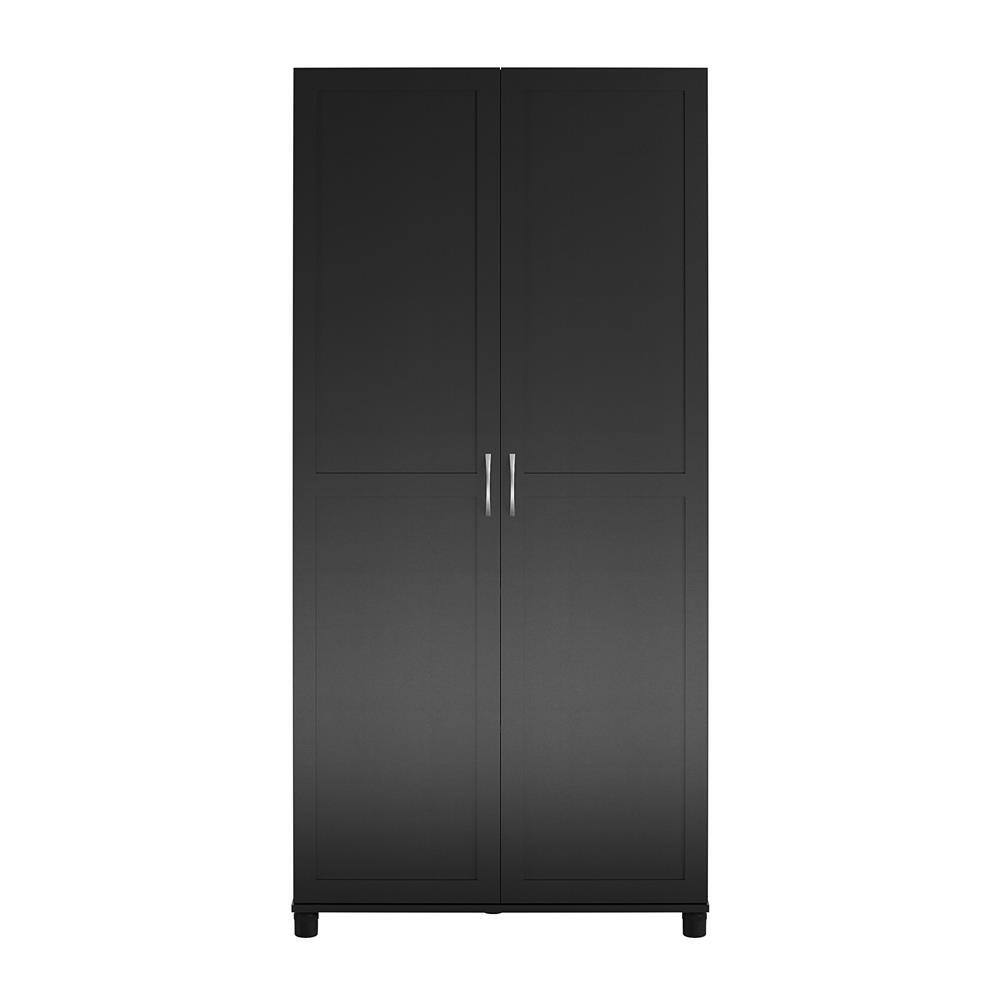 None Ashbury Heights 31.5 in. W Wood Closet System with Fluted Glass Metal Locker, Black