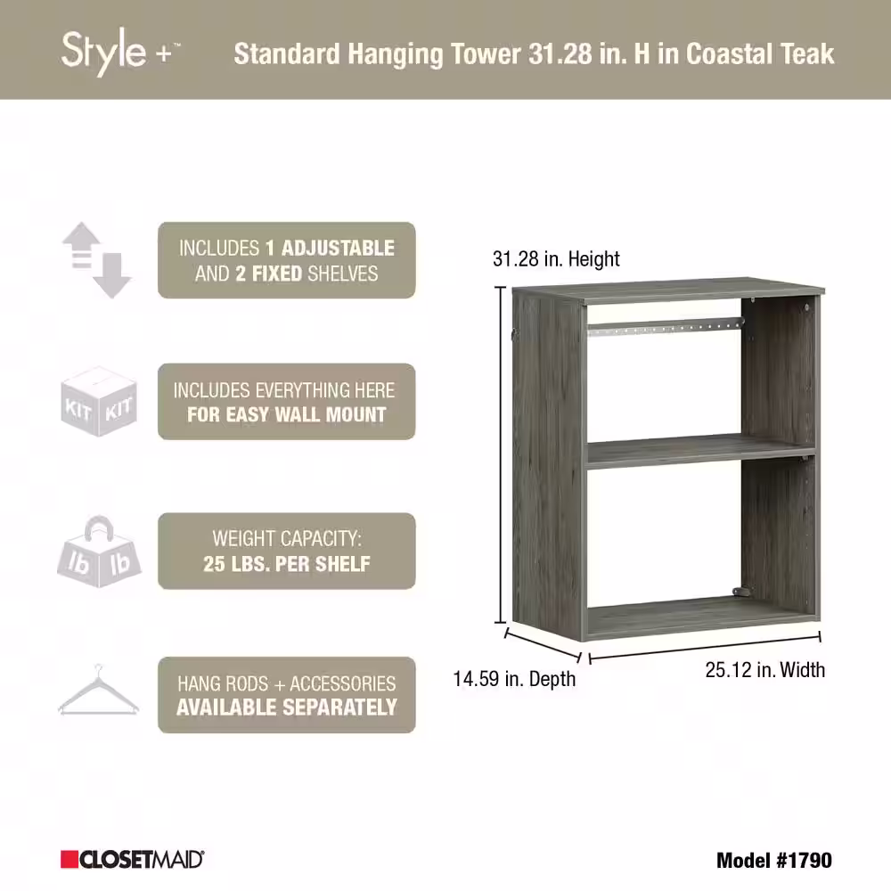 ClosetMaid Style+ 14.59 in. D x 25.12 in. W x 31.28 in. H Chocolate Wood Closet System Hanging Tower