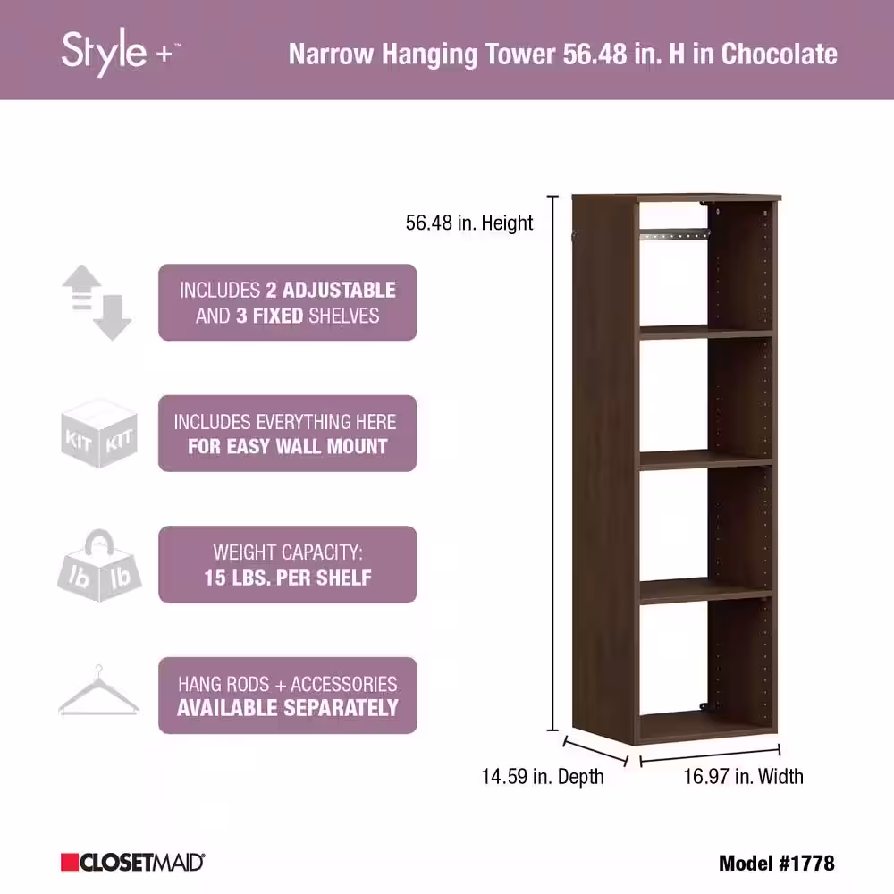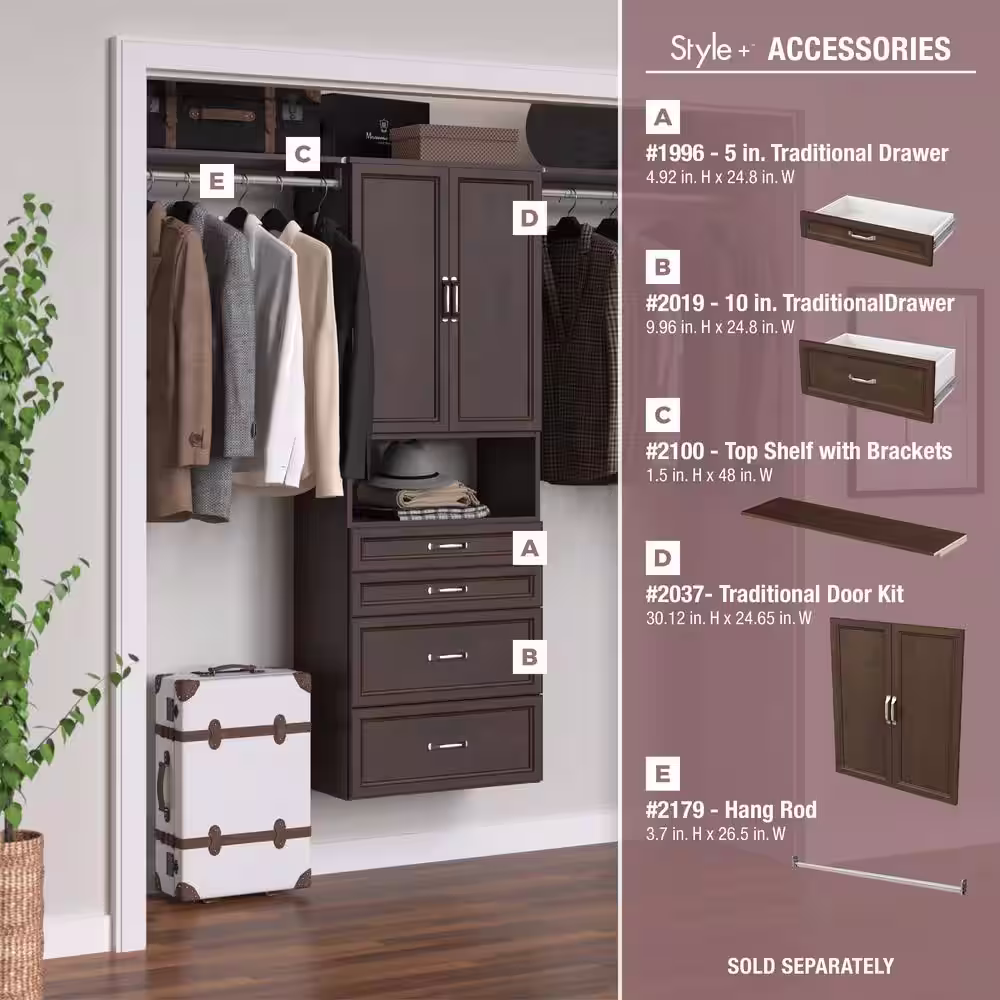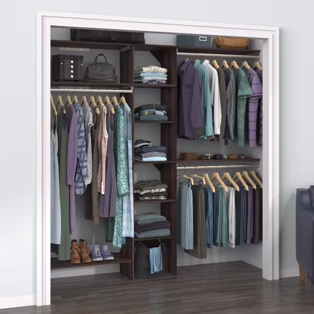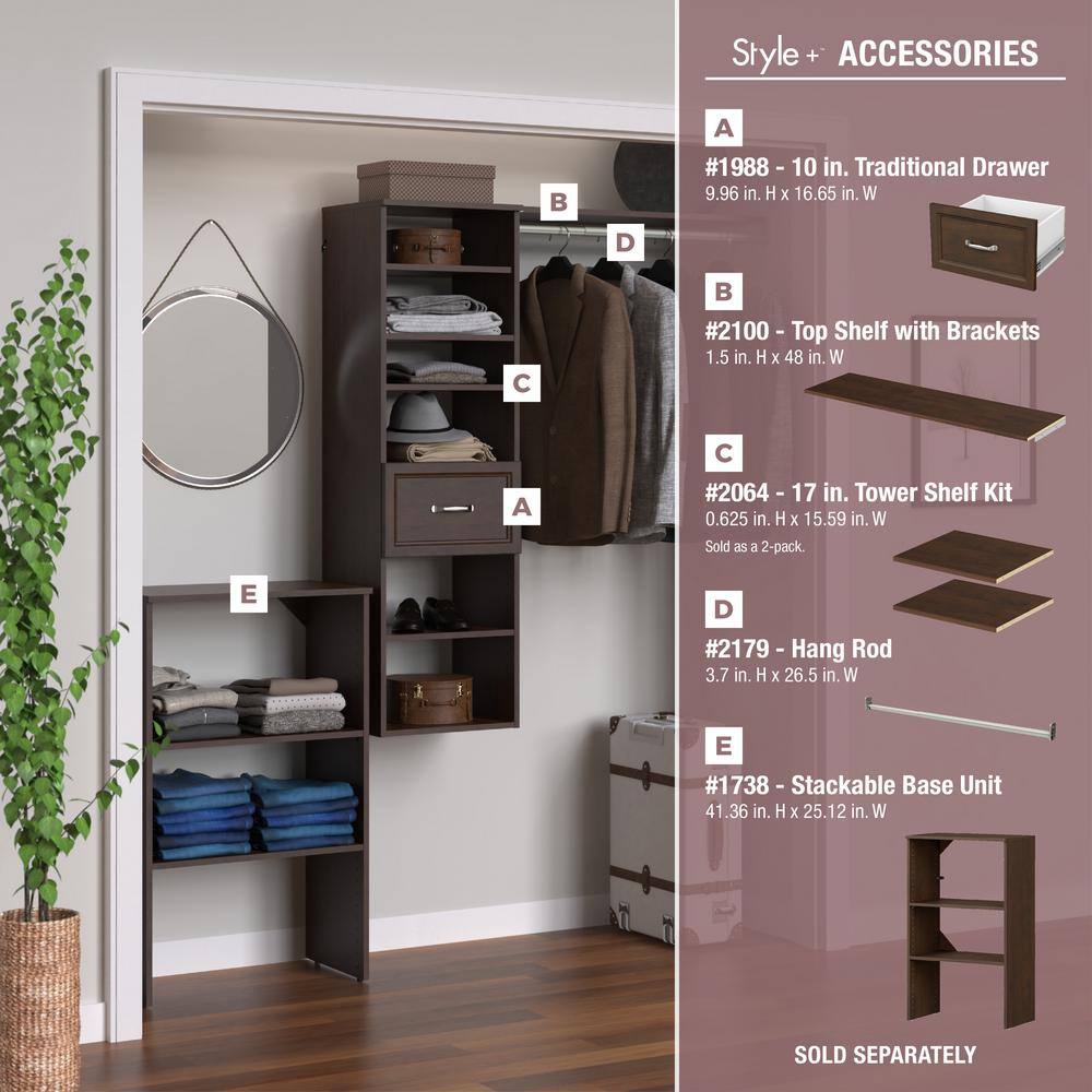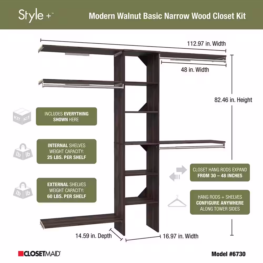 ClosetMaid Style+ 64.9 in W - 112.9 in W Modern Walnut Basic Narrow Floor Mount Wood Closet System Kit