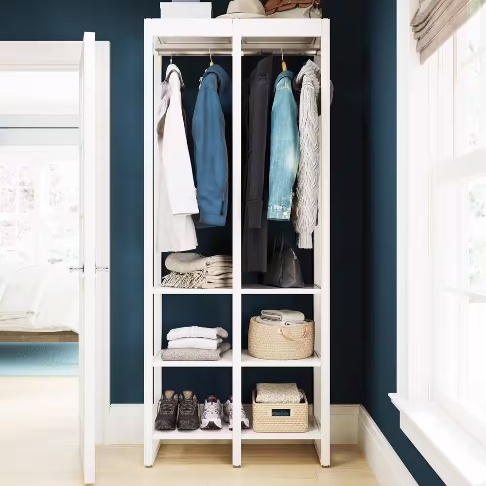 CLOSETS By LIBERTY 46.5 in. W White Adjustable Tower Wood Closet System with 8 Shelves