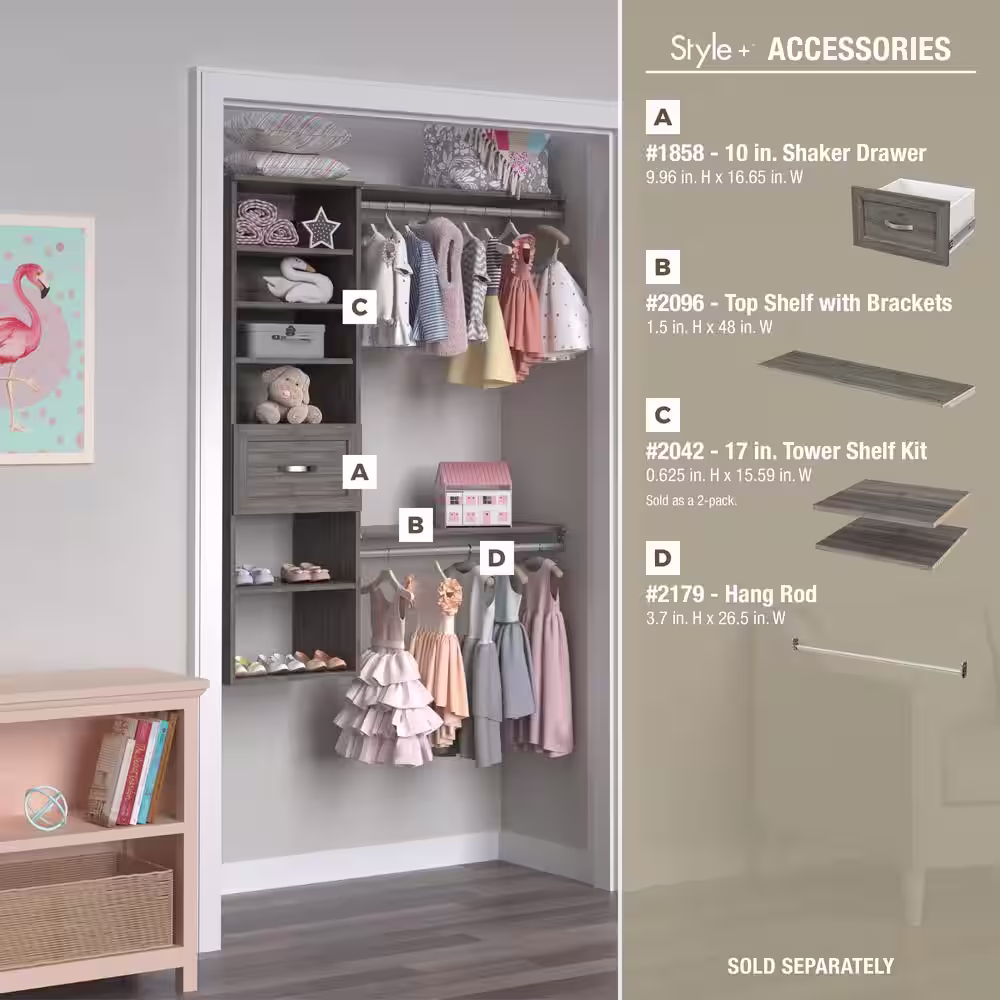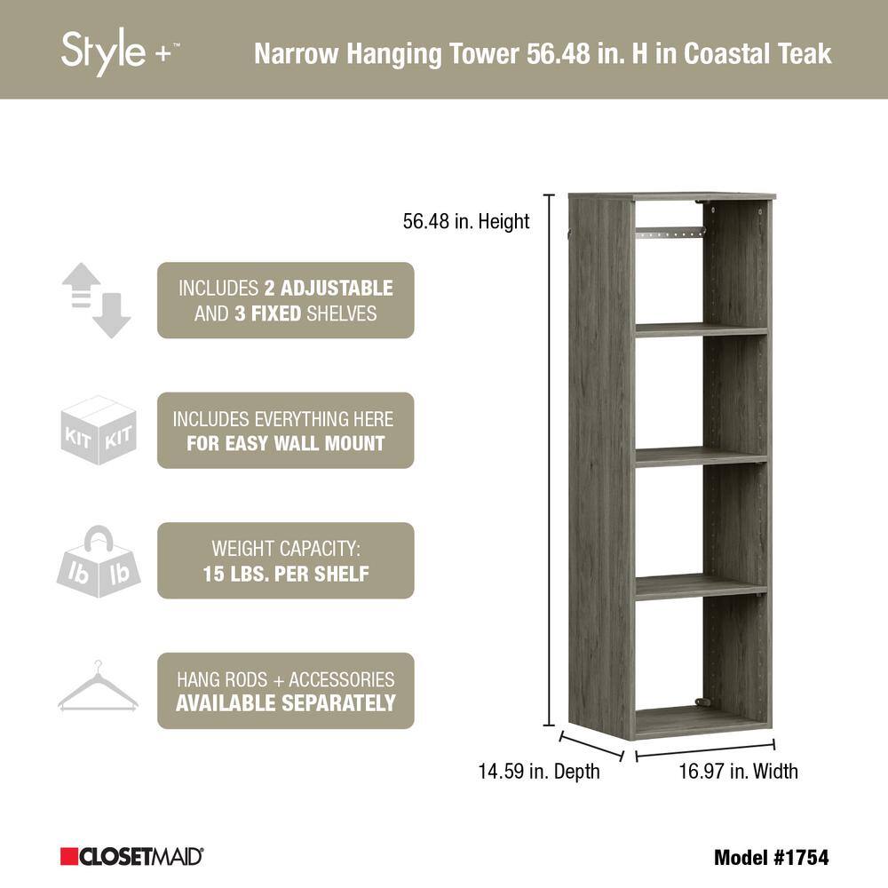 ClosetMaid Style+ 64.9 in W - 112.9 in W Bleached Walnut Basic Narrow Wood Closet System Kit