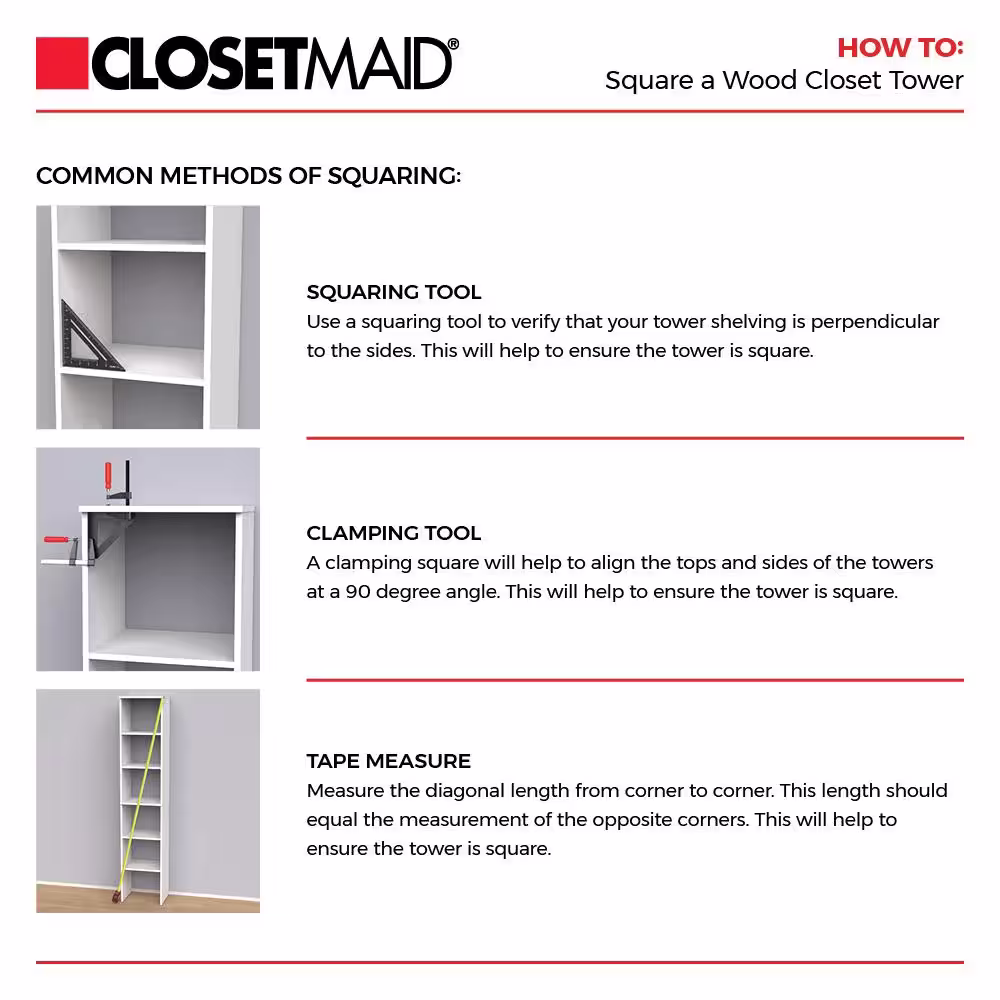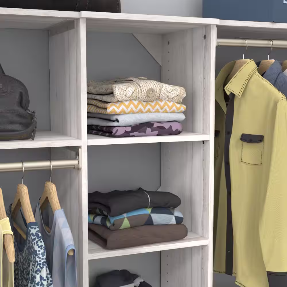 CLOSETS By LIBERTY 48 in. W to 92 in. W White Closet Shelf Tower with Rod Extensions Wood Closet System